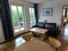 Wohnbereich mit ausziehbarer, moderner Doppelbettschlafcouch, Couchtisch mit Sesseln, Flat-TV mit Radiofunktion ,Esstisch mit 4 Stühlen