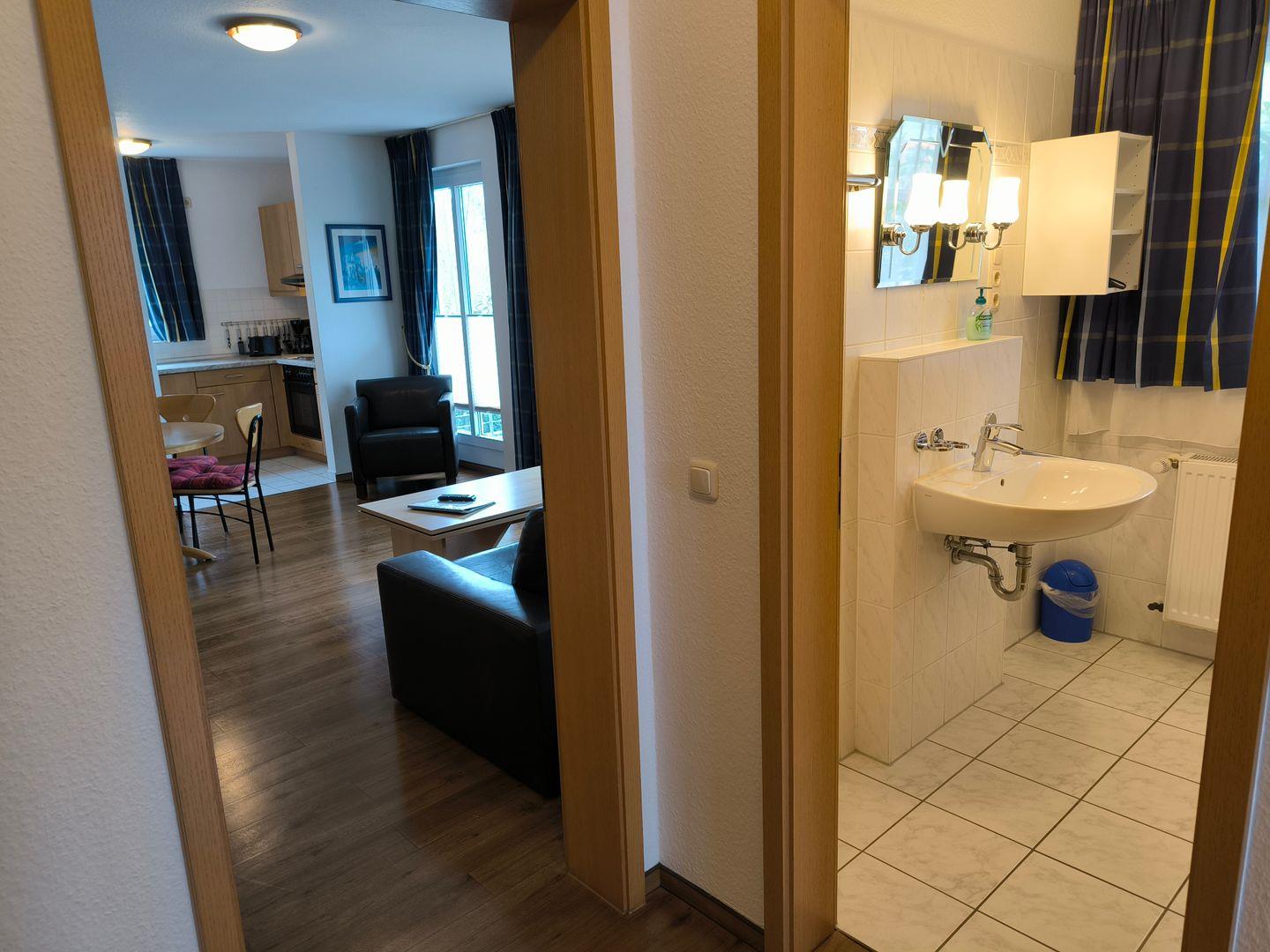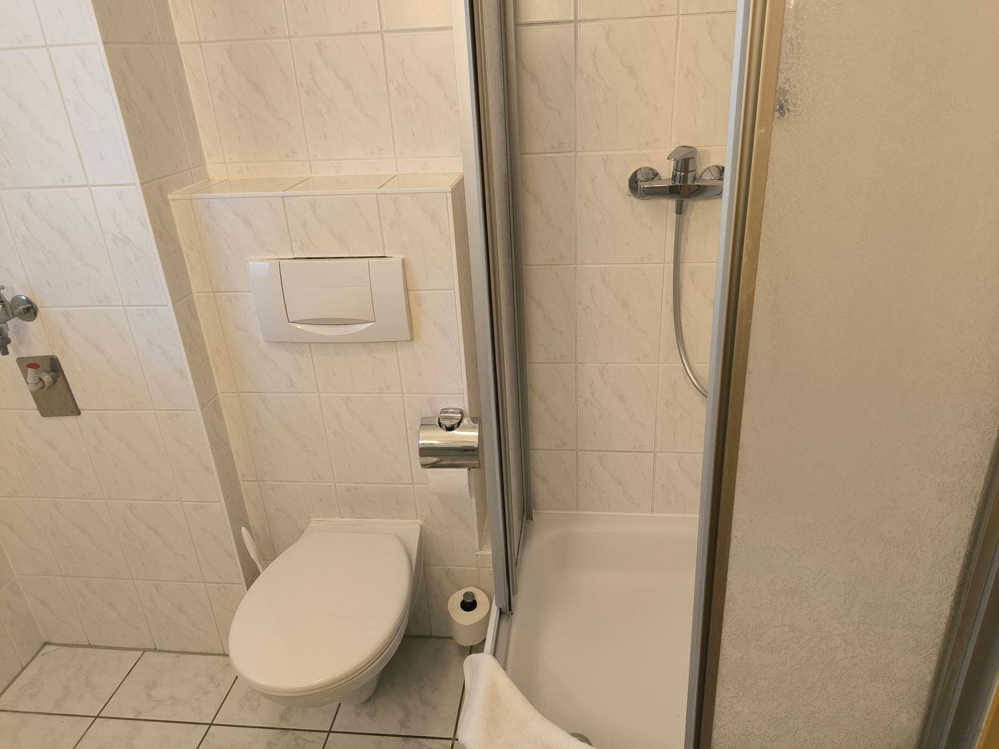 Bad mit Dusche, WC und Föhn