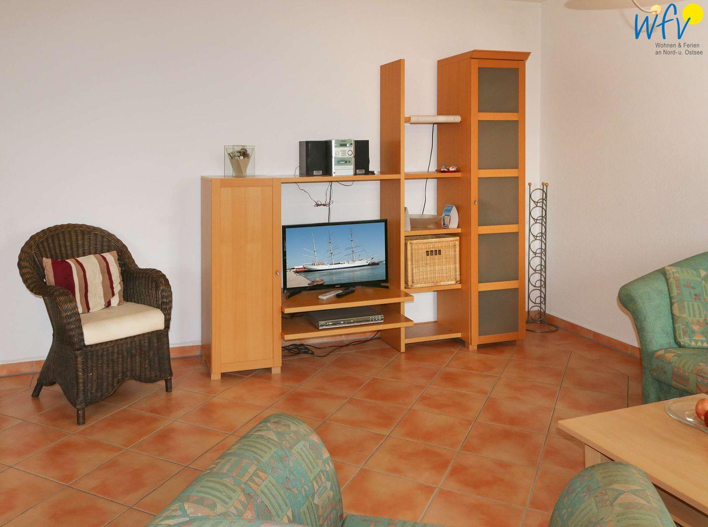Der Wohnraum mit gemütlicher Couchecke sowie TV, DVD- und CD-Player lädt zu entspannten Stunden ein. So können Sie mit der Familie in vollen Zügen erholsame Urlaubsmomente genießen!