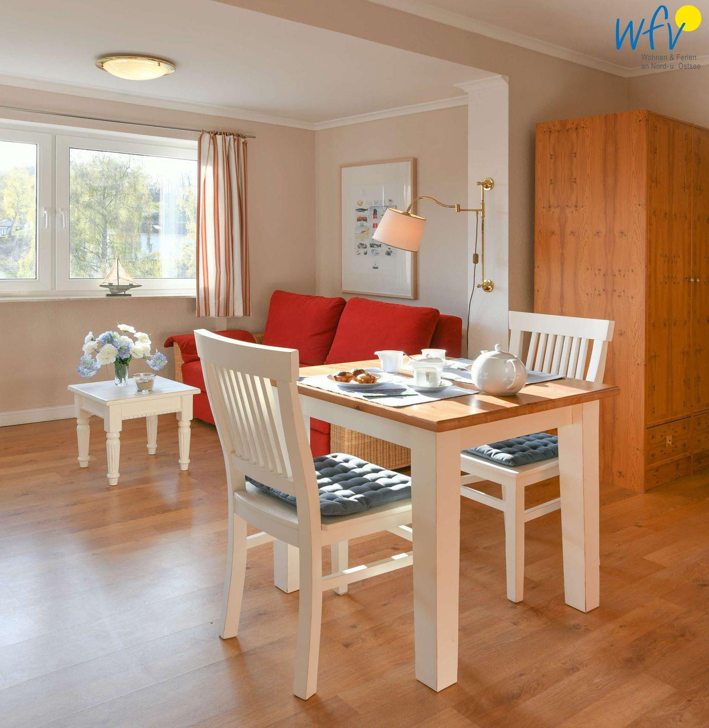 Zu der Ausstattung der Ferienwohnung gehört ein moderner Flachbildfernseher, außerdem empfangen Sie freies WLAN - selbstverständlich kostenlos.