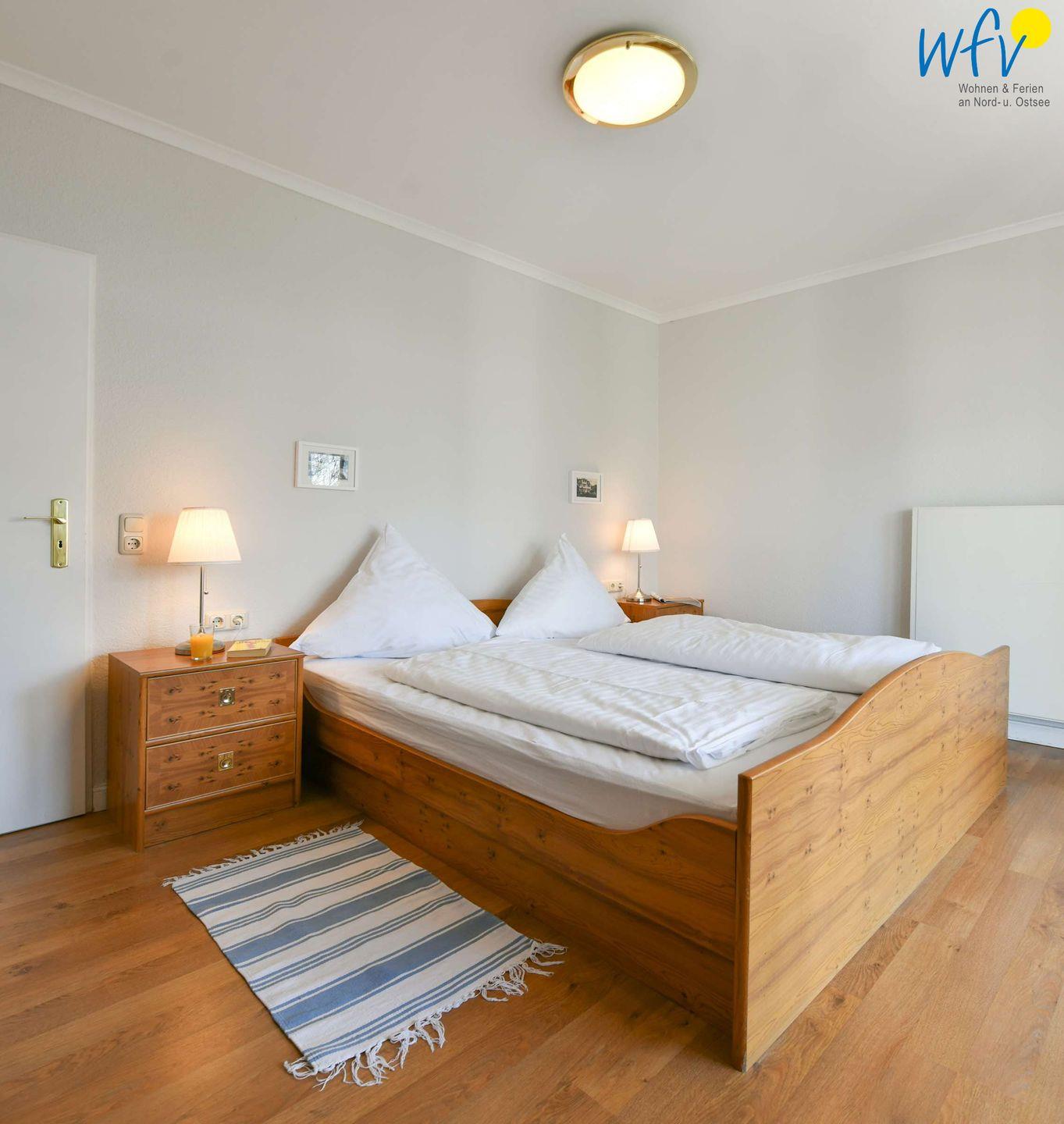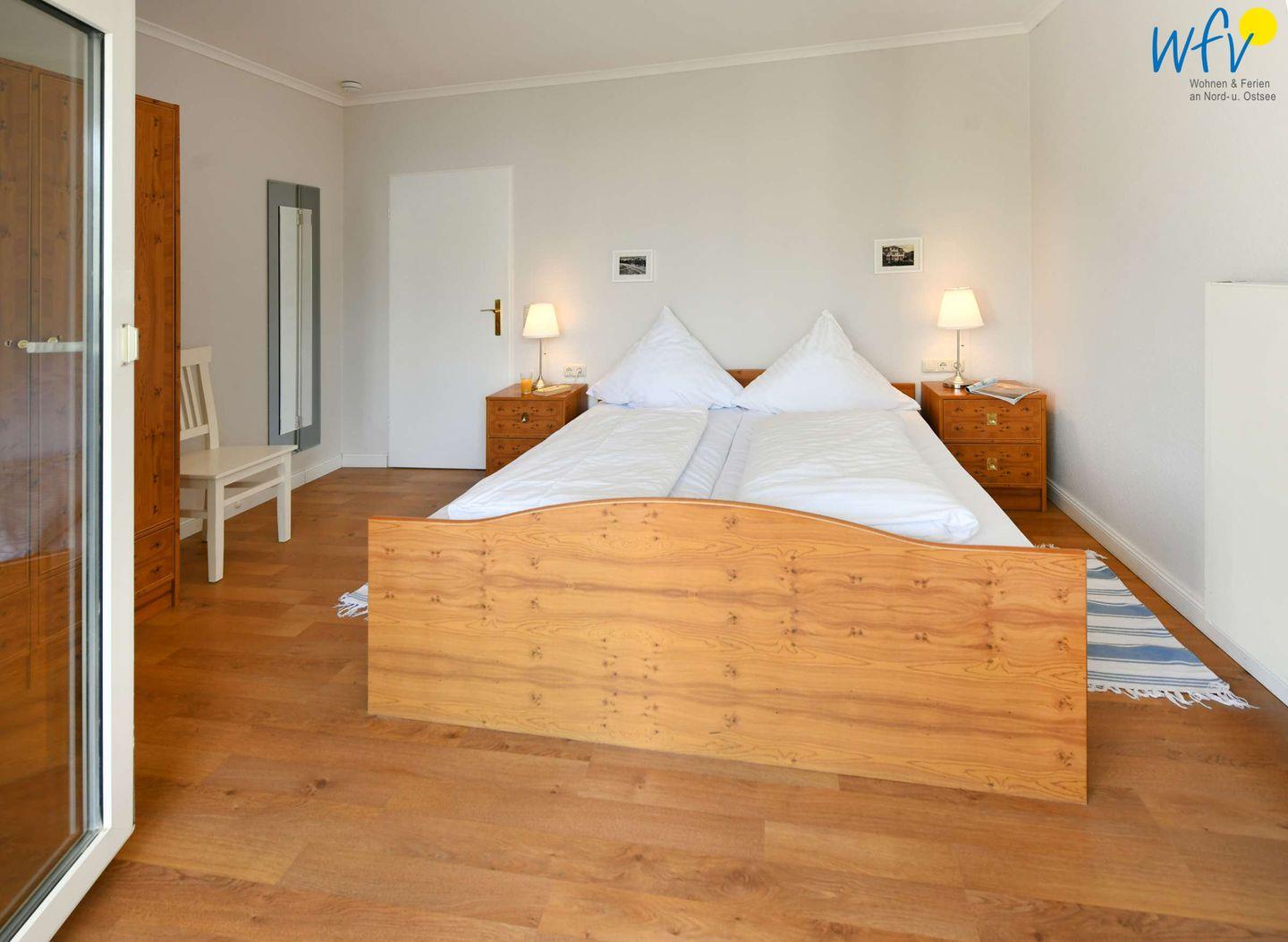 In dem separaten Schlafzimmer befindet sich ein Doppelbett.