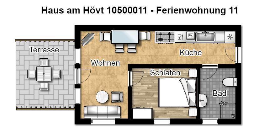 Zu der Ferienanlage „Haus am Hövt“ gehört zudem ein großer Gemeinschaftsgarten mit Grillplatz, Tischtennisplatte und Spielmöglichkeiten, den Sie gerne nutzen dürfen.