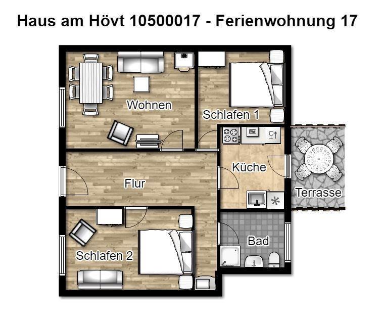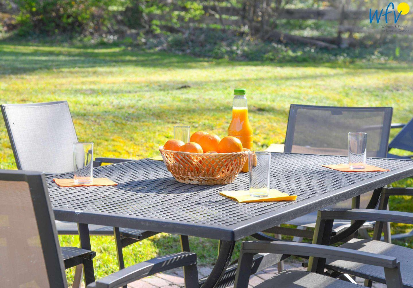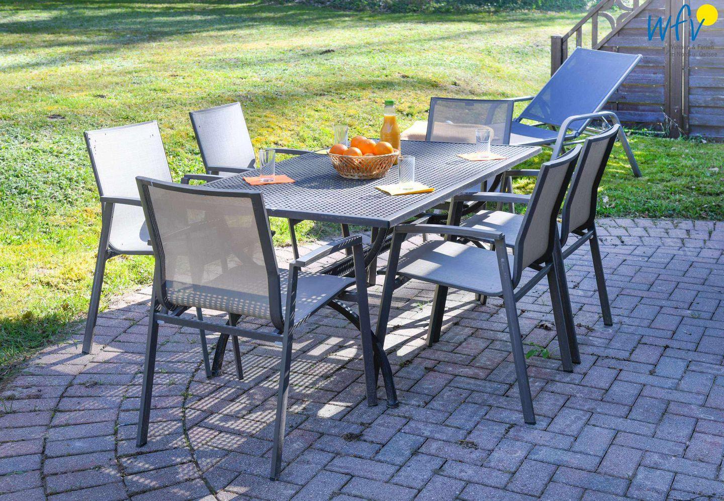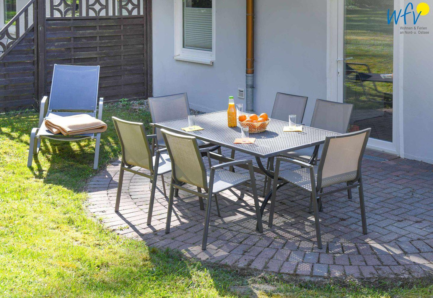 Wunderbar relaxen können Sie auch auf der möblierten Nordterrasse! Zu der Ferienanlage „Haus am Hövt“ gehört zudem ein großer Gemeinschaftsgarten mit Grillplatz, Tischtennisplatte und Spielmöglichkeiten, den Sie gerne nutzen dürfen.