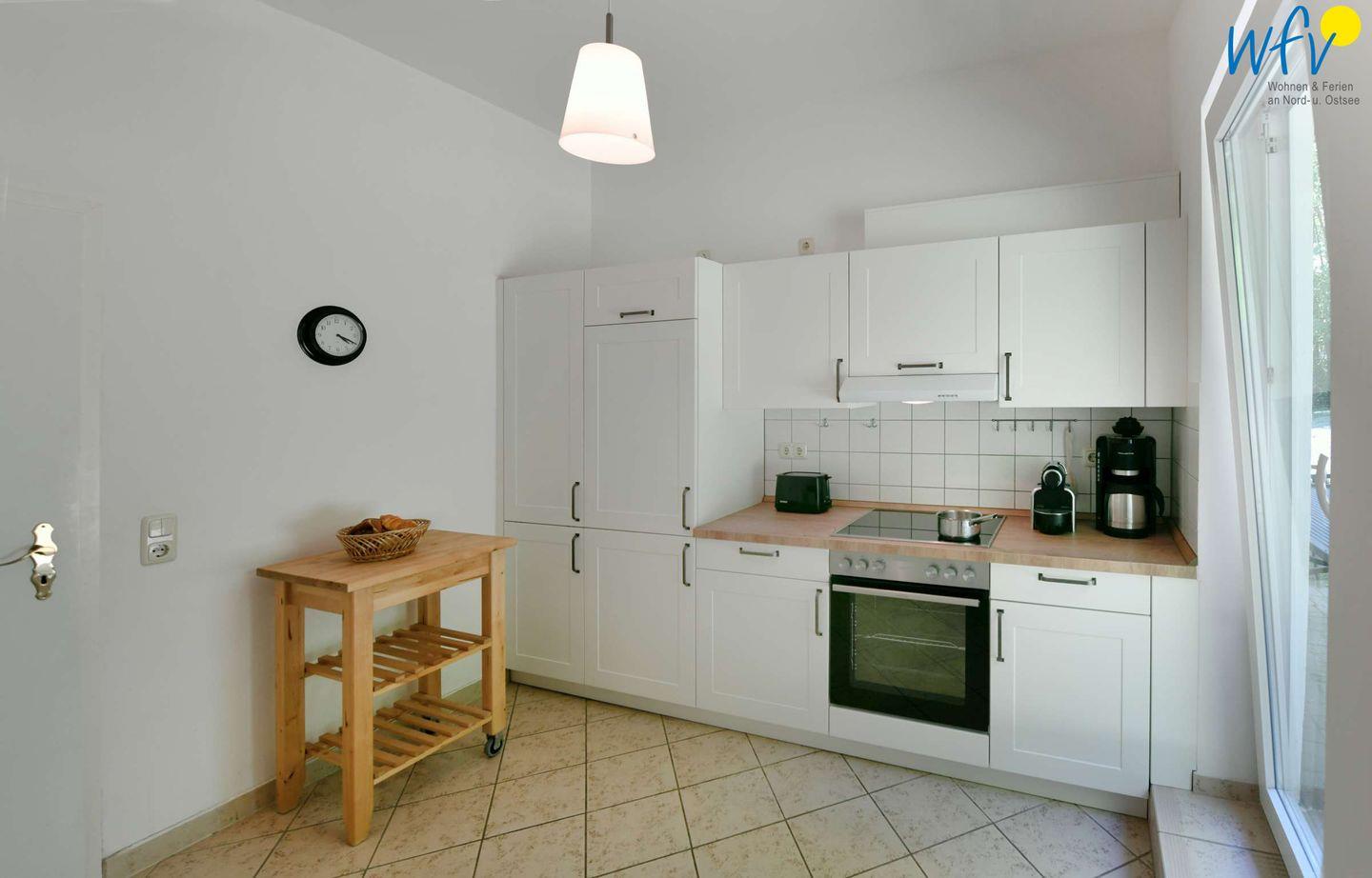Für eine angenehme Selbstverpflegung in Ihrem Urlaub auf Rügen, verfügt die Ferienwohnung über eine gut ausgestattete Küche u.a. mit Herd, Backofen, Kühlschrank mit Gefrierfach und Geschirrspüler sowie Wasserkocher und Toaster. Kaffeeliebhaber können zwischen der klassischen Kaffeemaschine und dem Kaffee-Vollautomaten (Kapseln) wählen.