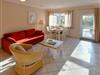 Ein großzügiger Wohnraum mit Couchecke, Esstisch, integrierter Küchenzeile und gemütlichem Schlafbereich bieten Ihnen Platz für die kleine Familie. Große Fenster, stilvolles Mobiliar und eine schöne Aussicht in den Garten verleihen der Rügener Ferienwohnung viel Gemütlichkeit.