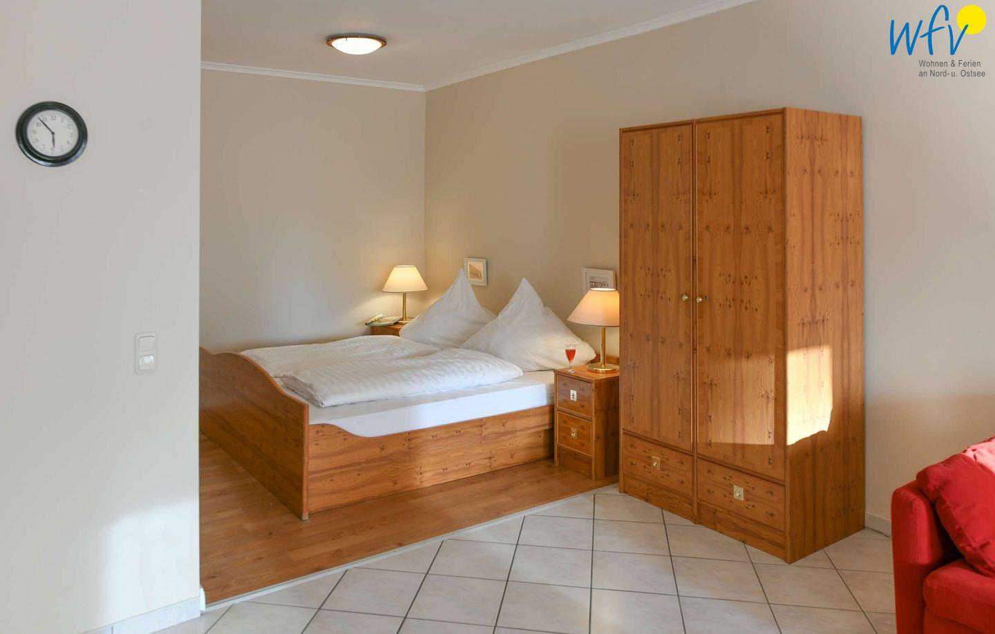 Schlafmöglichkeiten bestehen im Schlafbereich des Wohnraums durch ein Doppelbett (1,80 m x 2 m). Eine Aufbettung ist möglich (auf Anfrage).