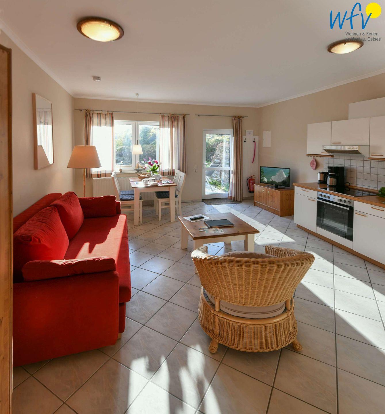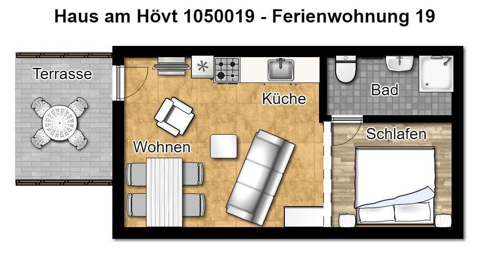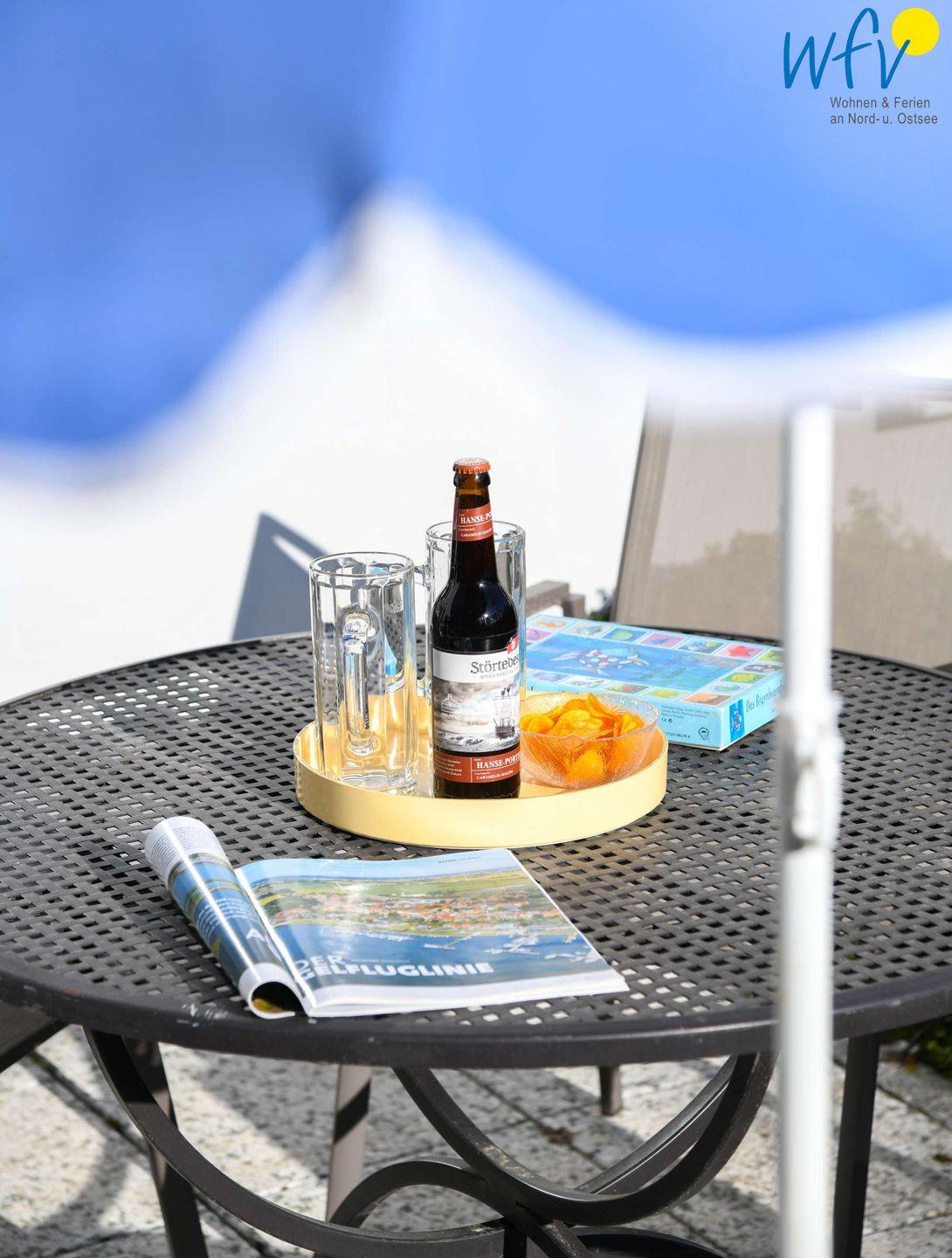 Wunderbar relaxen können Sie vor allem auf der möblierten Westterrasse! Zu der Ferienanlage „Haus am Hövt“ gehört zudem ein großer Gemeinschaftsgarten mit Grillplatz, Tischtennisplatte und Spielmöglichkeiten, den Sie gerne nutzen dürfen.