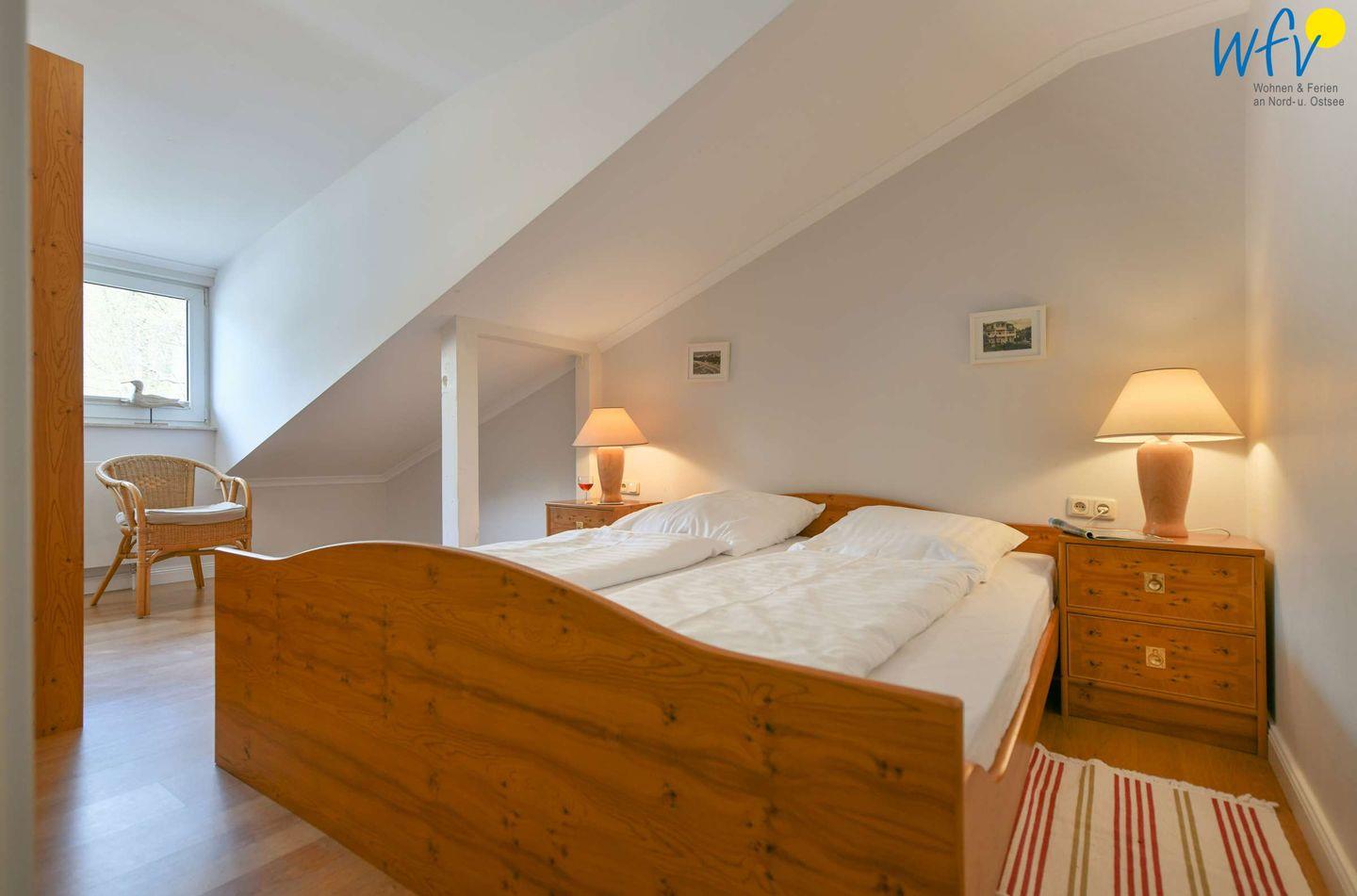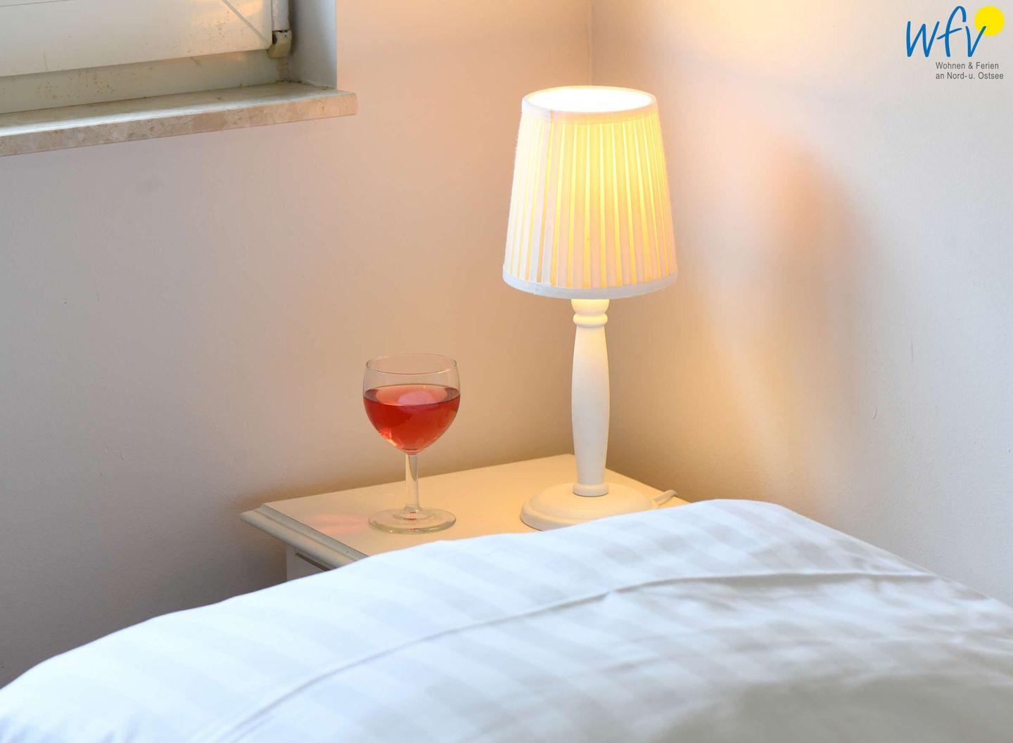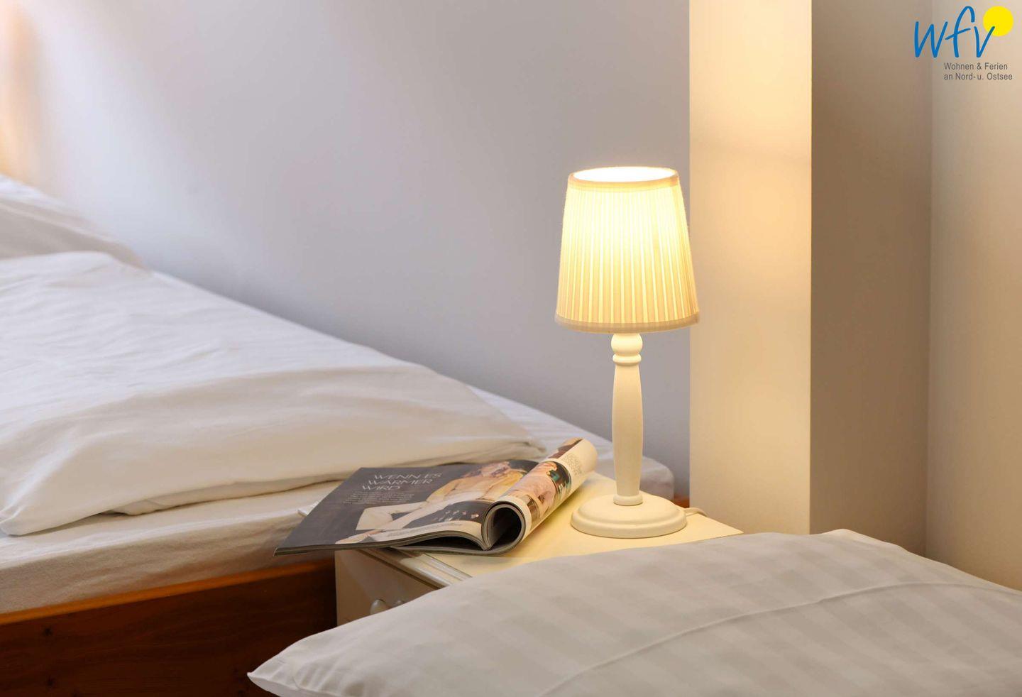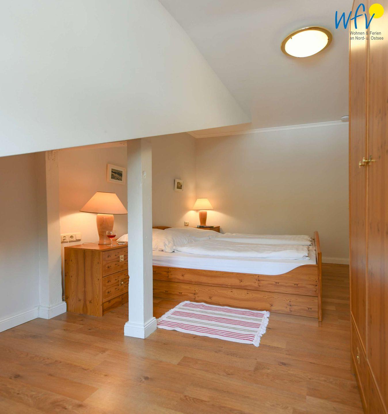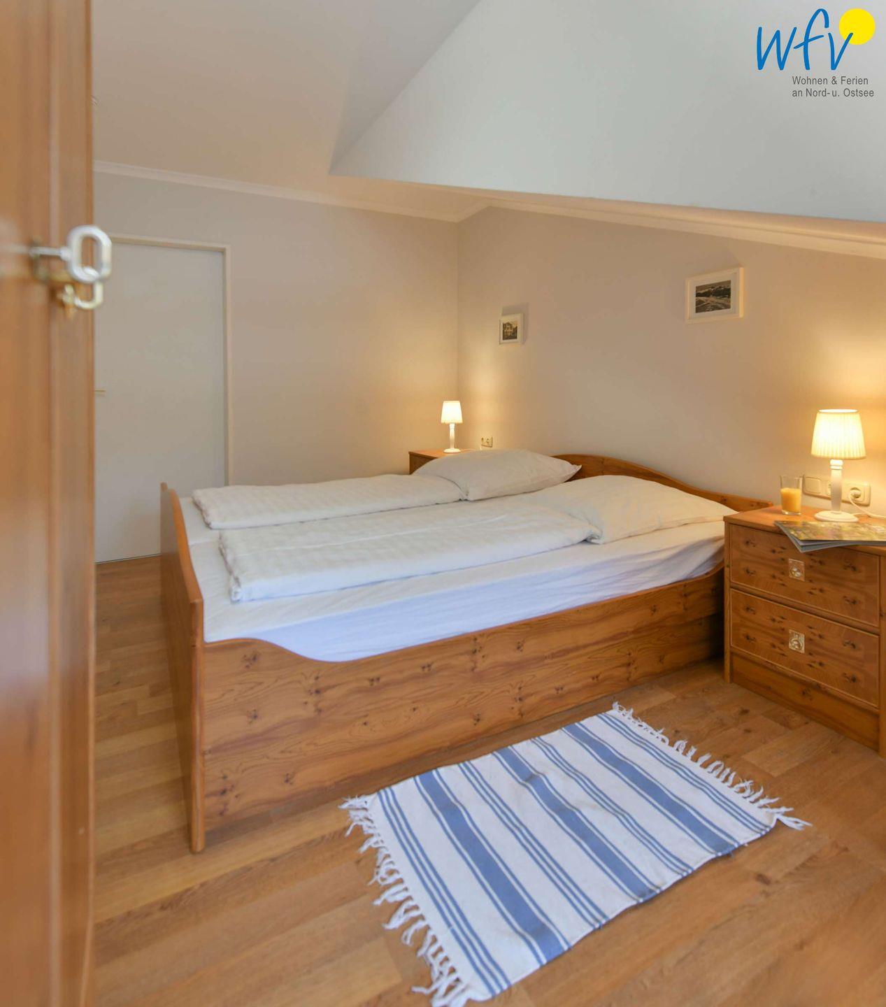 Zwei der vier separaten Schlafzimmer der Rügener Ferienwohnung sind mit einem Doppelbett (1,80 m x 2 m) ausgestattet, eines mit einem Stockbett und eines mit zwei Einzelbetten (0,90 m x 2m). Eine Aufbettung ist möglich (auf Anfrage).