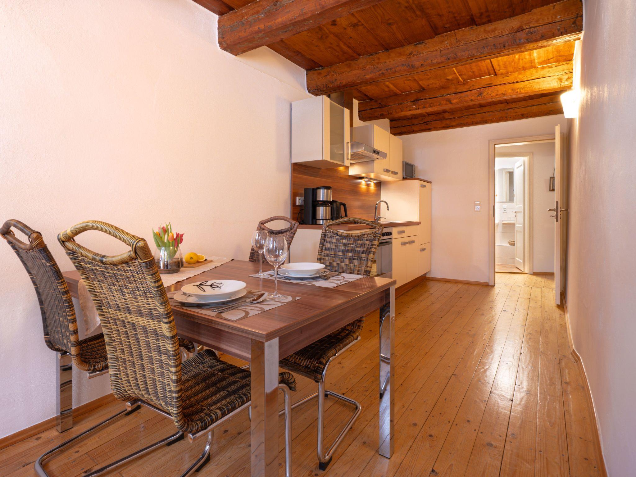 In this charming holiday flat, located on the 1st floor, you will enjoy historical charm in every corner. The exposed wooden beam ceilings give the well-kept living area a warm, inviting touch. For your convenience, the living and sleeping area is skilfully designed in a studio layout, complemented by a fully equipped eat-in kitchen with ceramic hob, filter coffee machine, kettle and mini oven, which invites you to linger and self-cater.
