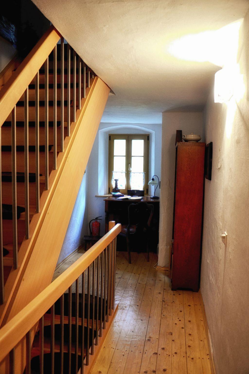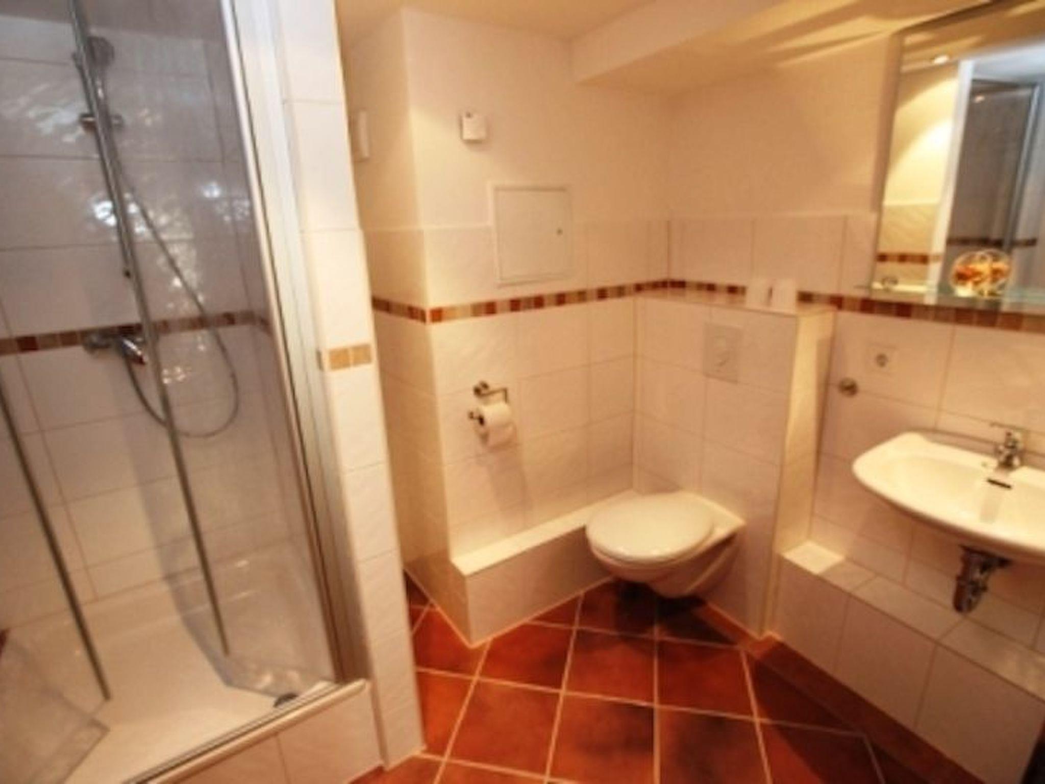 The room impresses with its individual furnishings and historical elements such as the wooden beamed ceiling and the exposed old wall. It is equipped with a comfortable living and sleeping area that is ideal for one person. The practical kitchen area has a 2-ring hob, a ceramic hob, a kettle and a filter coffee machine - perfect for preparing small meals yourself. The spacious bathroom with shower completes the offer and provides the necessary comfort during your stay.