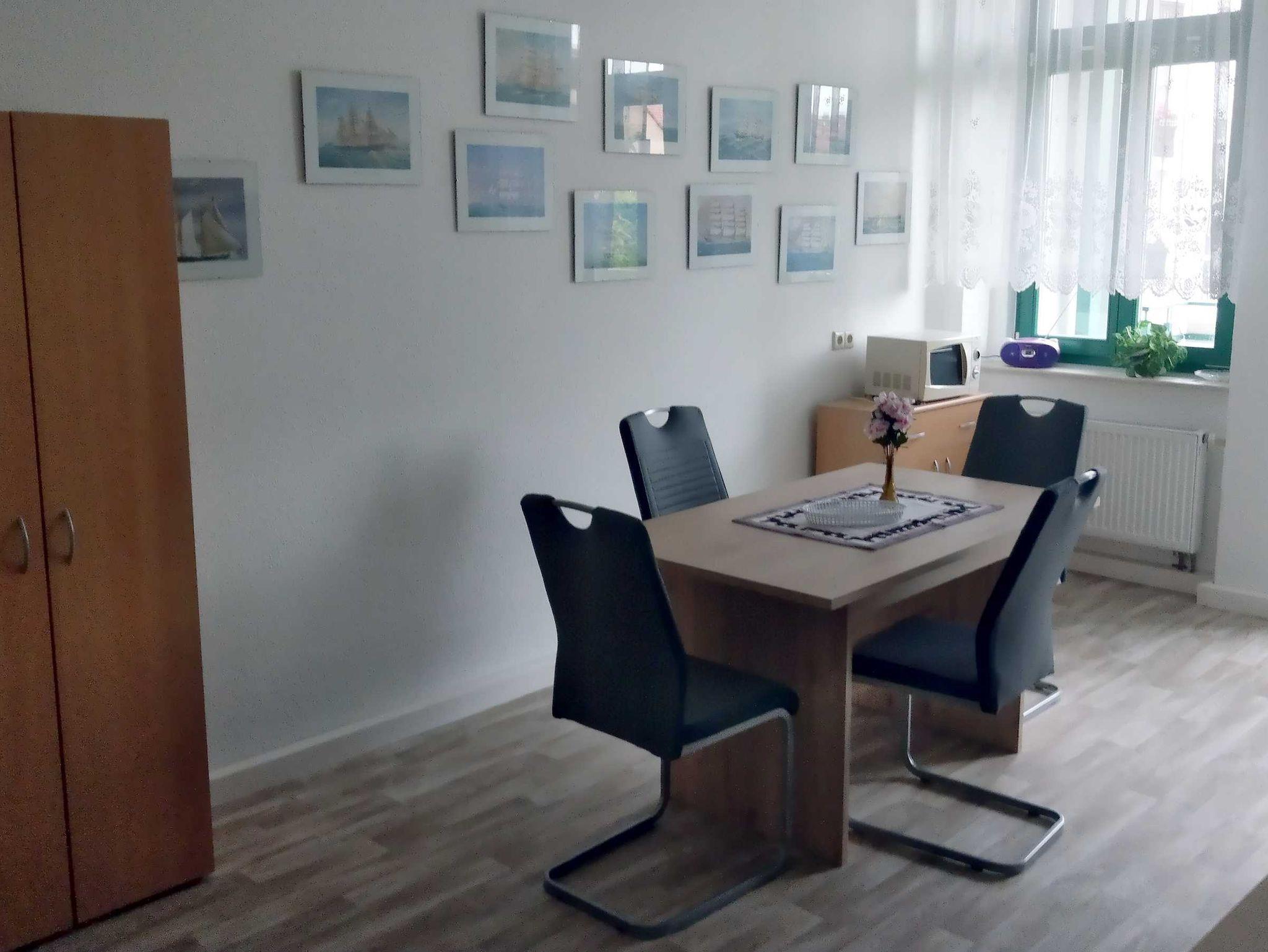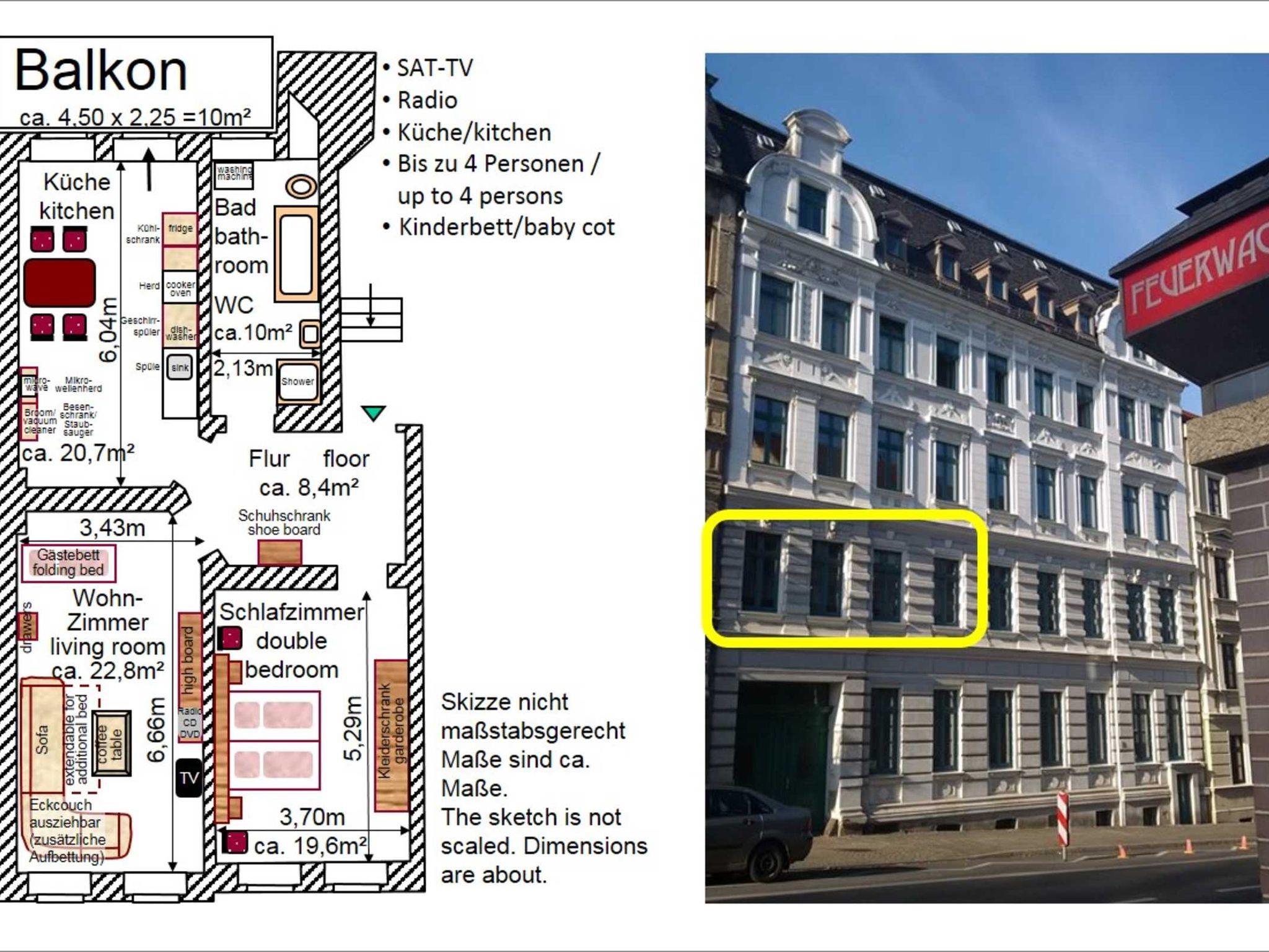 Komplett ausgestattete Wohnung mit Gas-Etagenheizung, auch für Langzeitaufenthalt geeignet. Bad und Küche wurden im Sommer 2019 komplett erneuert. Die Einrichtung im Wohnzimmer ist schlicht und zum Teil rustikal. Von der Küche aus gibt es Zugang zu einem großzügigen 10qm Balkon mit Westausrichtung, Blick in den Innenhof. Bettwäsche und Handtücher inkludiert. Duschgel und Shampoo ist nicht vorhanden. Wasch+Trocknermaschine (Kombimaschine) vorhanden. Kostenloses WLAN verfügbar. Doppelbett mit 2 Matratzen 90cmx200cm im Schlafzimmer, Aufbettung (mobiles Gästebett) möglich, Klappcouch für weitere Person als Schlafplatz nutzbar. Kinderbett und Hochstuhl für Kleinkind vorhanden. Frühstück kann nicht gebucht werden. Rauchen ist nicht gestattet. Gegenüber der Straße befindet sich die aktive Feuerwache, die gelegentlich auch nachts mit Martinshorn und Blaulicht ausrücken kann.