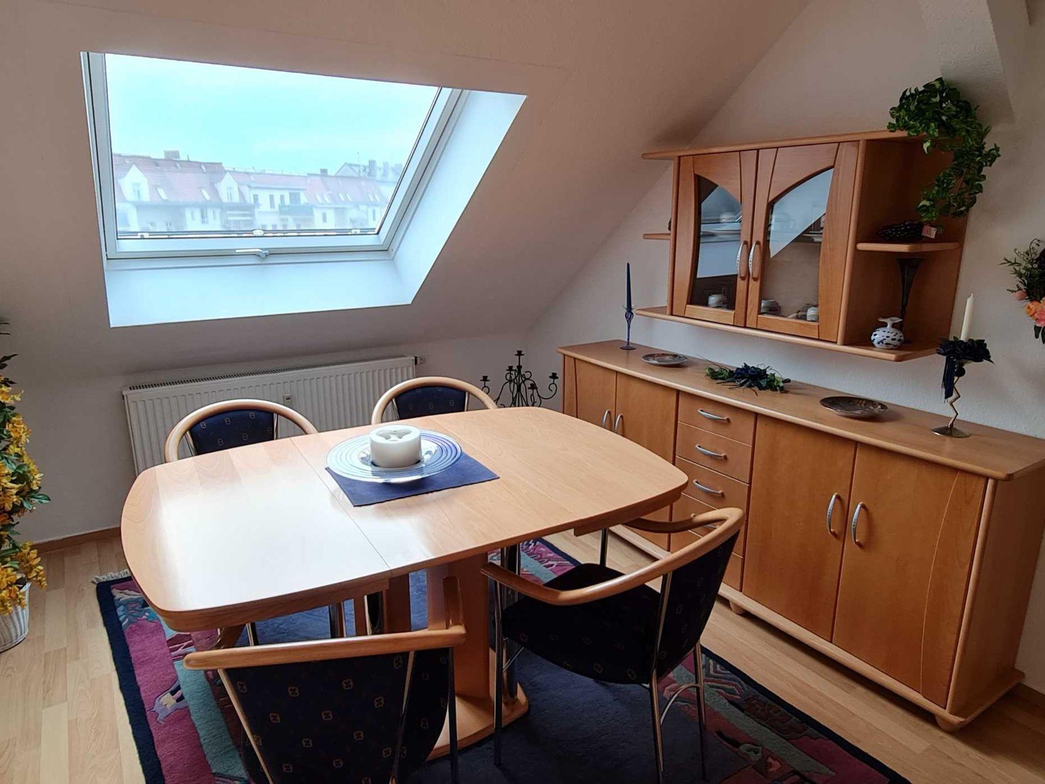 Im Wohn- und Esszimmer haben die Dachflächenfenster einen Veluxsunblocker erhalten, sodass es gut temperiert ist an heißen Tagen.