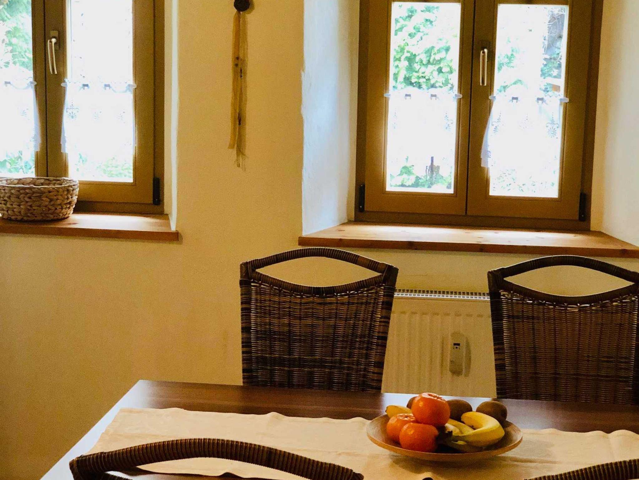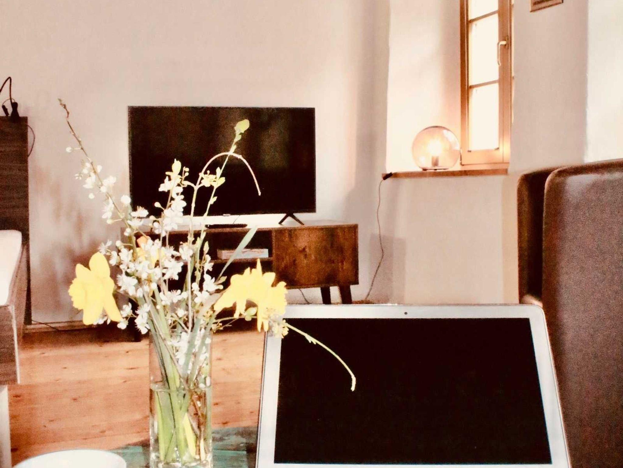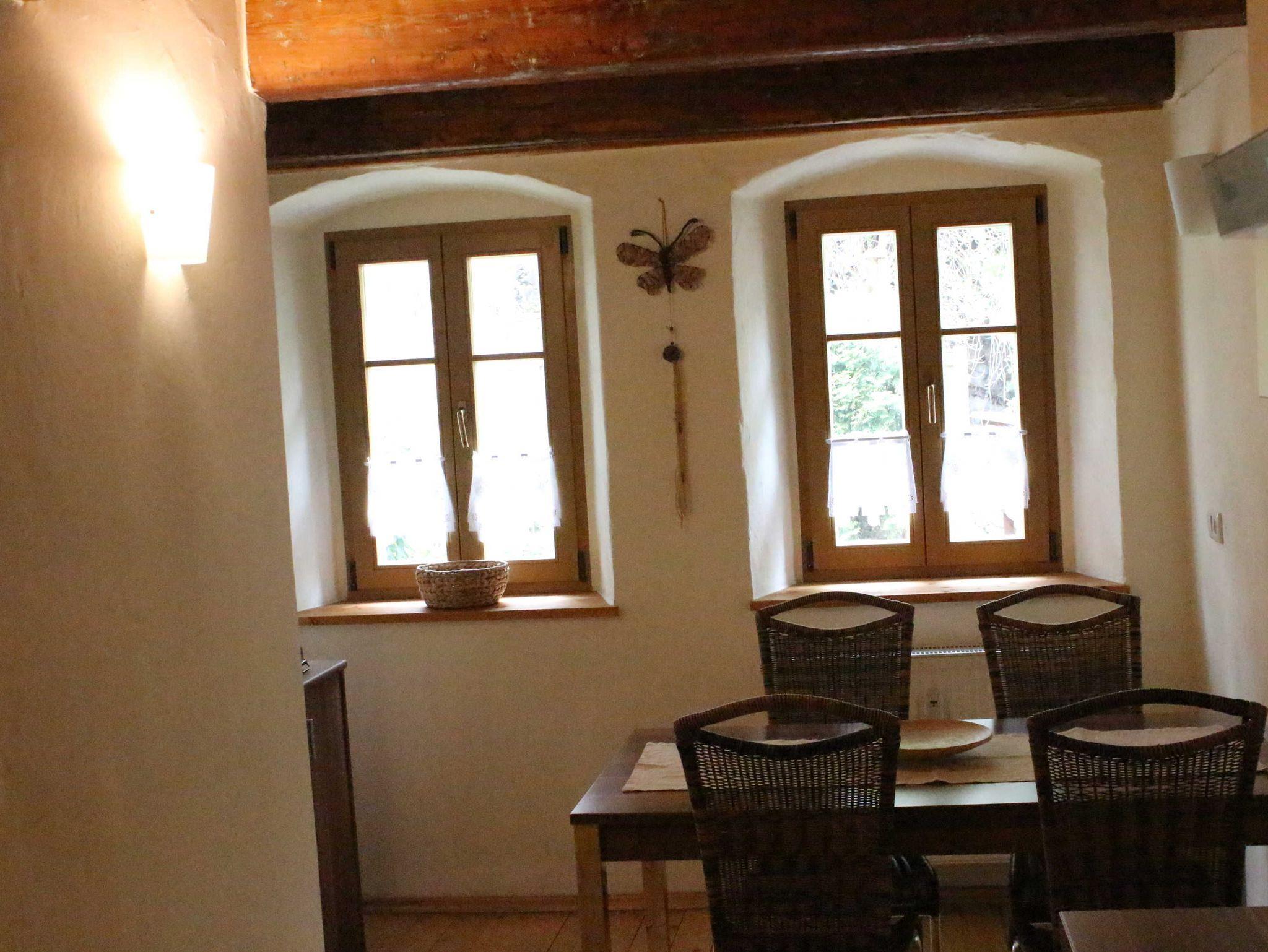 Eine elegante Wohnung unter historischer Holzbalkendecke mit Wohn-/Schlafraum, Bad und Wanne finden Sie im ersten Obergeschoss. Die Ferienwohnung Altstadtbrücke bietet Unterkunft für bis zu vier Personen. Aus der schönen Wohnküche sehen Sie in den gepflegten Garten mit lauschigen Sitzecken und können den Sonnenuntergang hinter der Peterskirche beobachten.