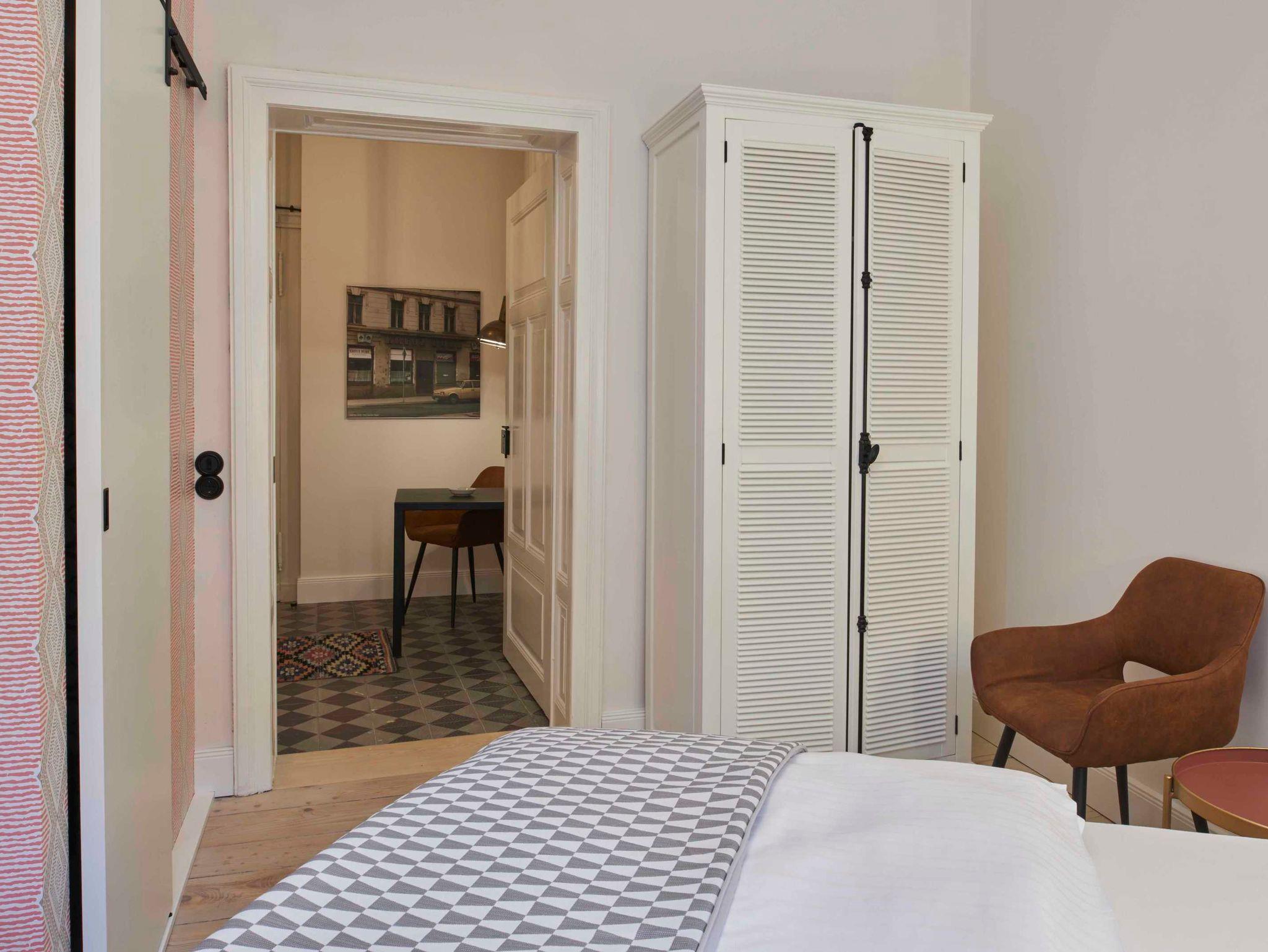 Unser gemütliches Studio eignet sich besonders für einen Kurztrip nach Görlitz. Das Studio bietet auch bei einem Geschäftsausflug alles was man braucht: ein großes Doppelbett, eine komplett eingerichtete Küche, Schreibtisch und High-Speed-WLAN.