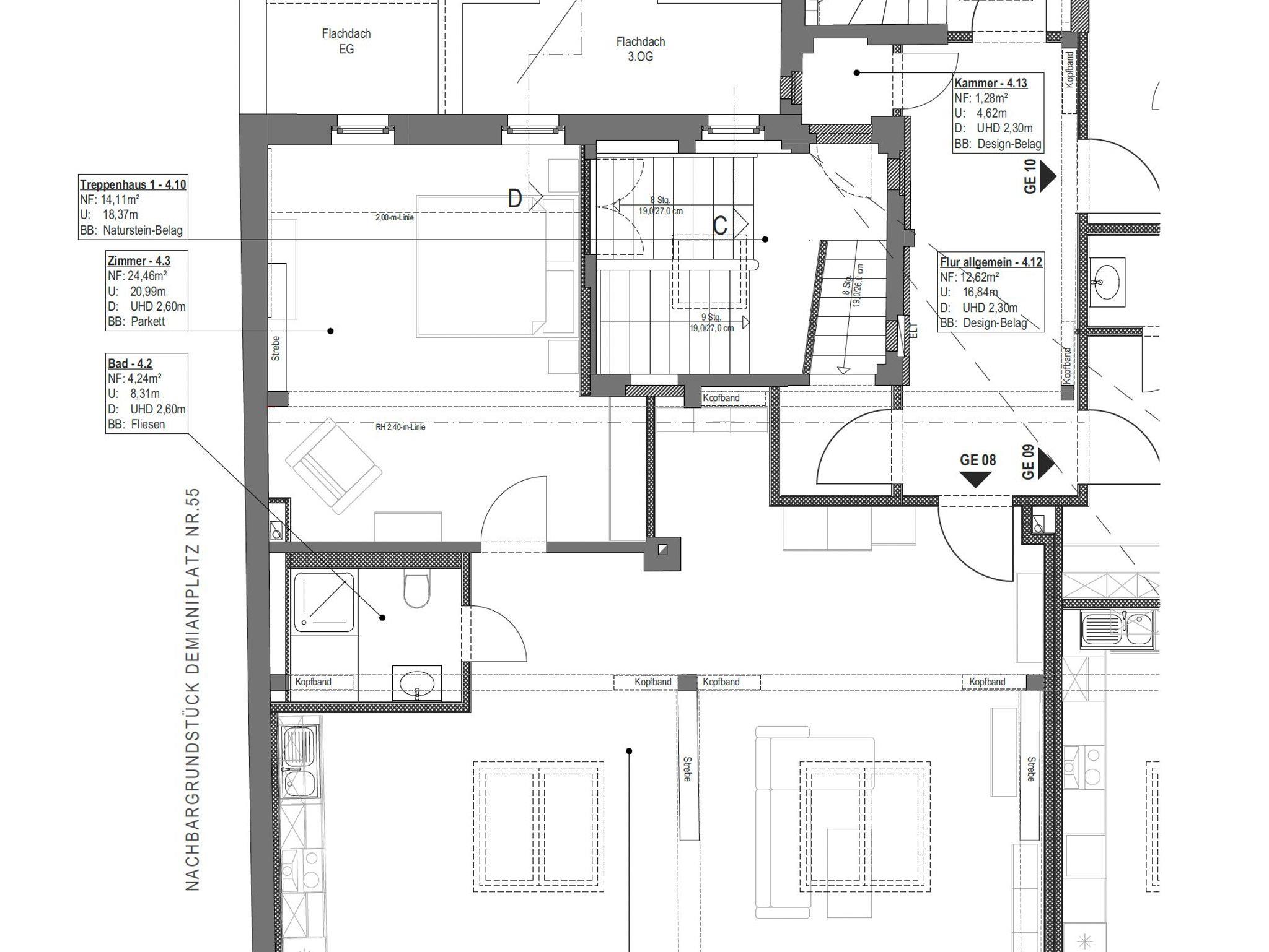 Das Haus hat einen Fahrstuhl bis zur dritten Etage. Die letzte Etage, in der sich die Ferienwohnung befindet, erreichen Sie über eine Treppe.