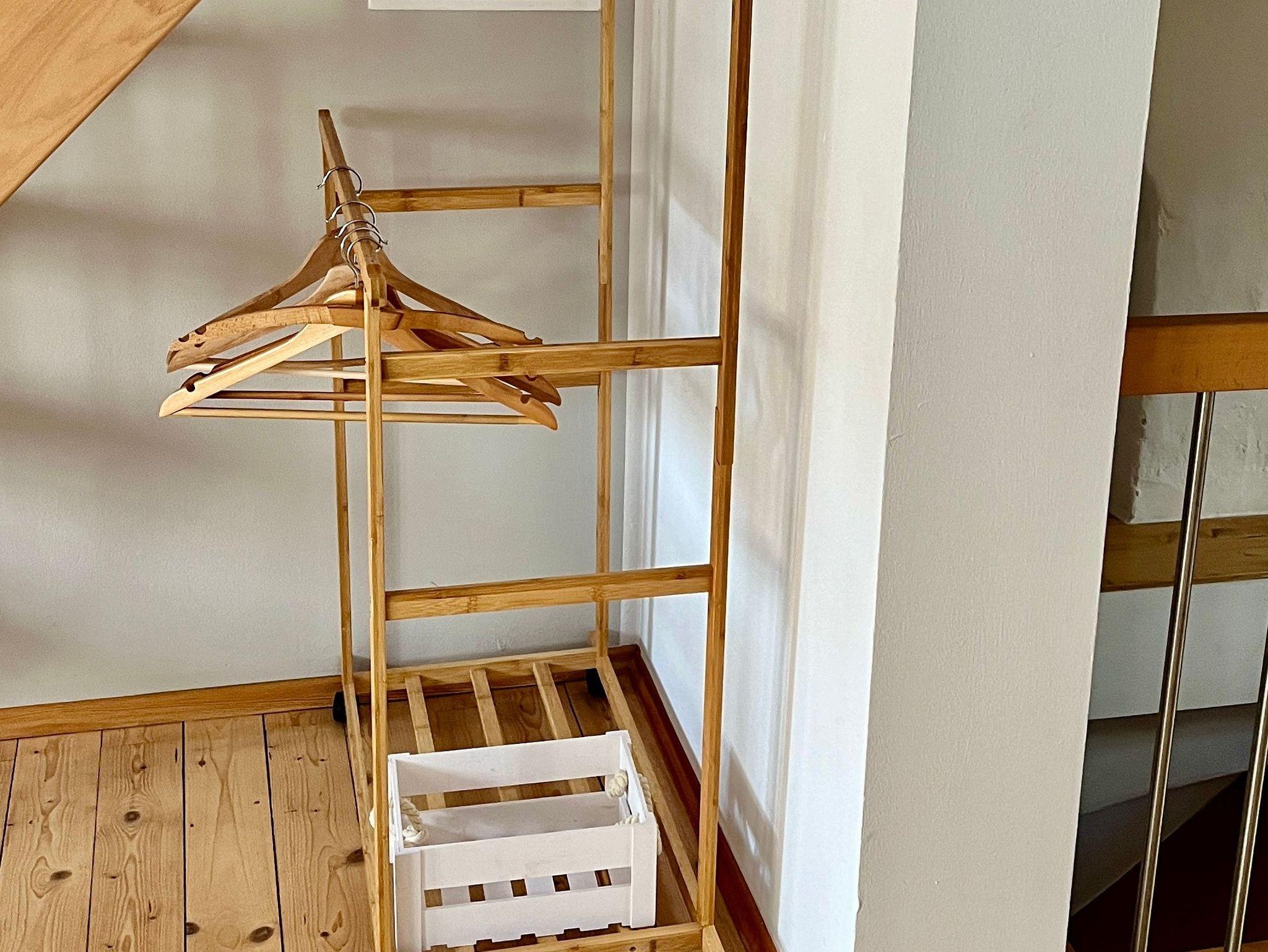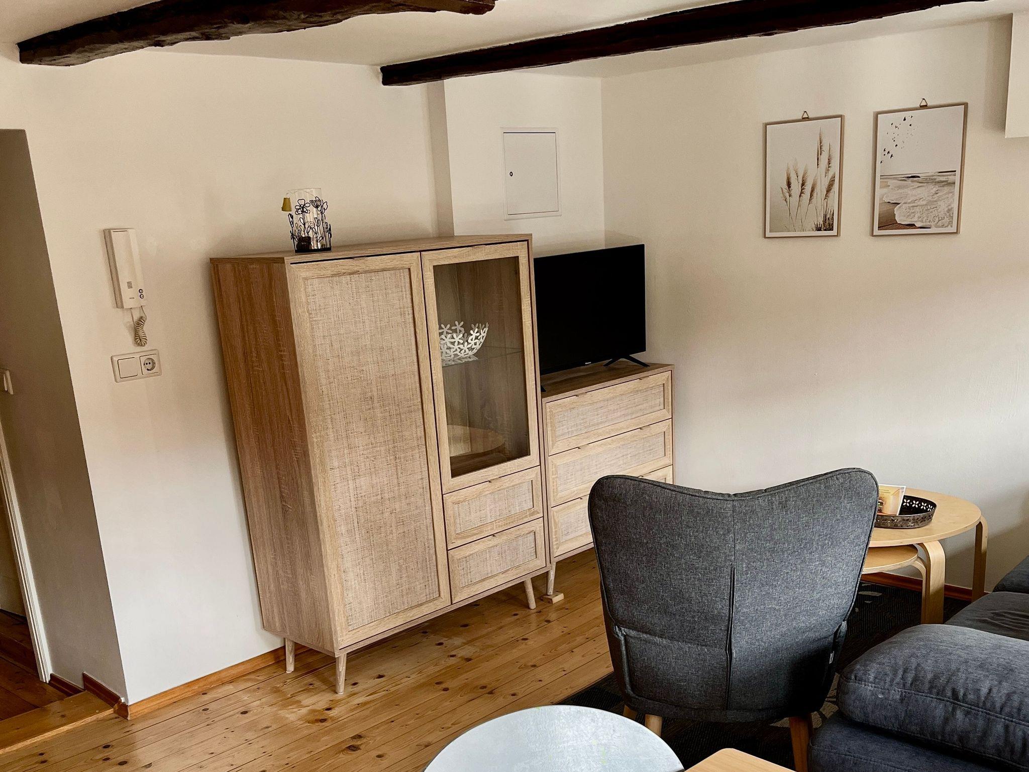 In der Maisonett-Ferienwohnung Landeskrone blicken Sie in die historische Altstadt von Görlitz. Die Küchenecke unter altem Gebälk, der Wohn-/ Schlafraum mit Blick zur Neiße und der Schlafraum unter dem Dach bieten Übernachtung für bis zu vier Personen. Diese Wohnung ist eine Dachwohnung mit Holzbalken. Aufgrund der Erhaltung des historischen Baustils beträgt die Durchgangshöhe teilweise nur 1,80 m.