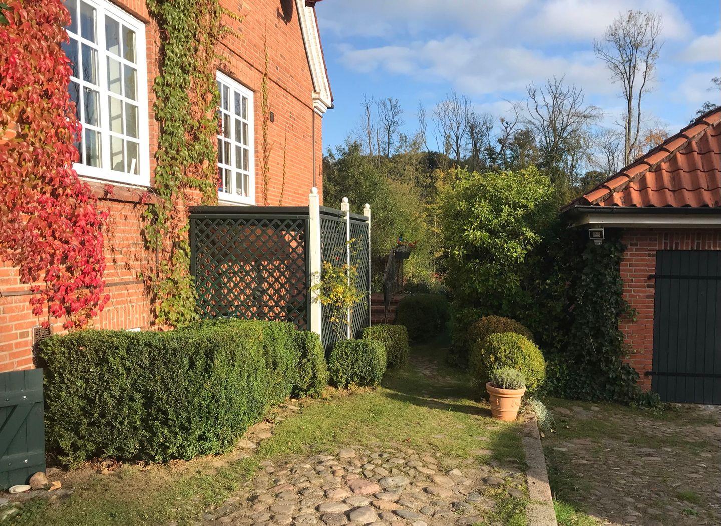 Der Garten grenzt an urigen Wald, der der bekannten Internatsschule Louisenlund gehört. Das Haus liegt in einer