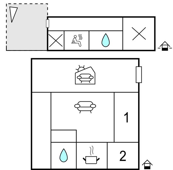 Opholdsstue - 1 Soveplads. (Sofa, madras eller lignende).