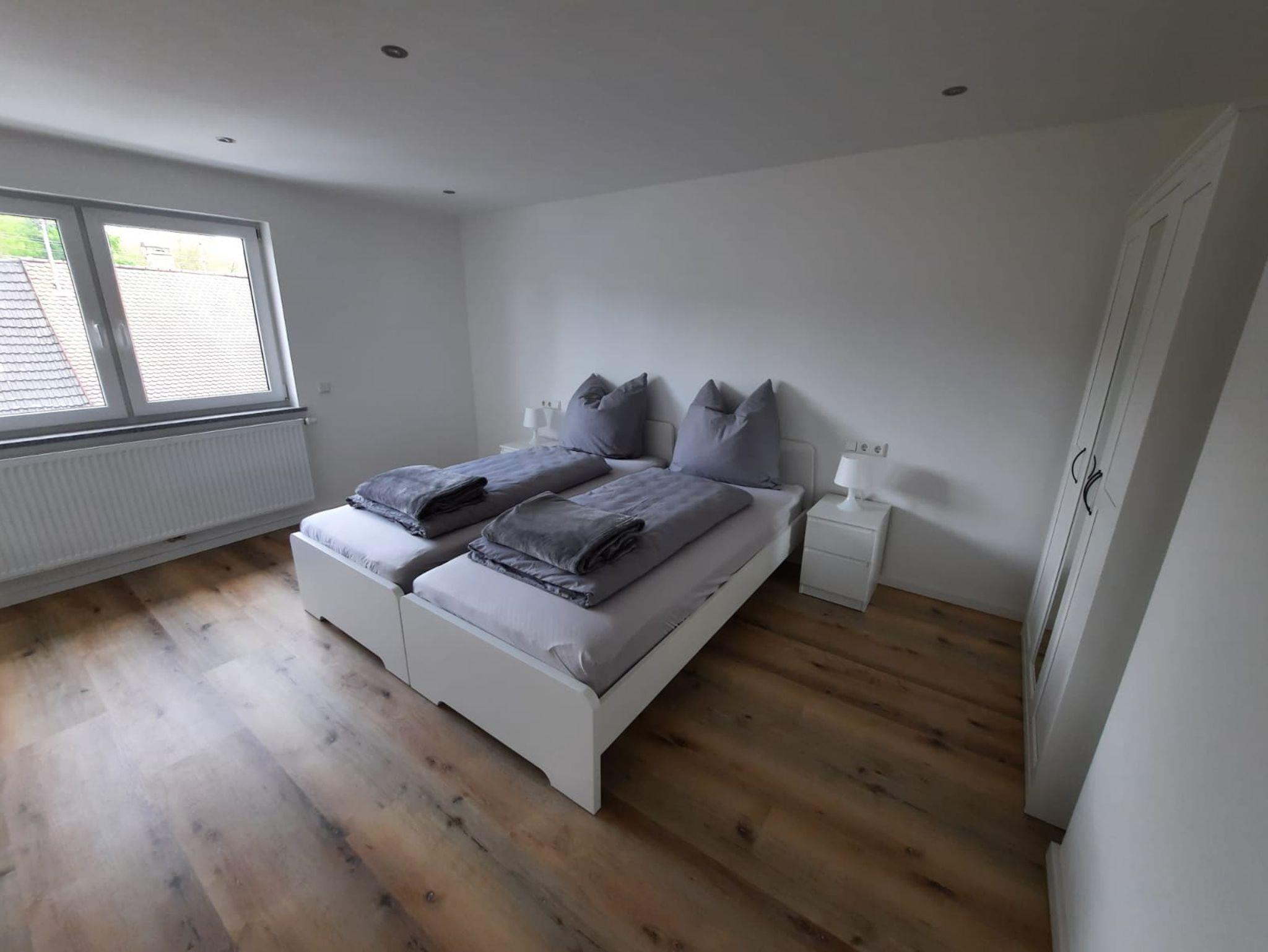 Unsere kernsanierte Ferienwohnung mit 70 m² Wohnfläche bietet Platz für 1-6 Personen. Das gemütliche Wohn-Esszimmer mit Zugang zum Balkon, Esstisch mit 6 Stühlen, Schlafsofa und Sat TV (Smartfernseher mit allen gängigen Streamingapps wie Netflix, YouTube...) lädt zum Verweilen ein. Die offene und komplett ausgestattete Küche mit Geschirrspüler, Kühlschrank inclusive kleinem Gefrierfach, Herd, Backofen, Mikrowelle, Wasserkocher, Kaffeepadmaschine, Toaster und Stabmixer lässt keine Wünsche offen. Die Ferienwohnung verfügt über 2 Schlafzimmer mit je 2 Einzelbetten (Betten zusammenschiebbar, in einem Schlafzimmer befindet sich ebenfalls ein Smart TV). Das geräumige Badezimmer mit modernem Doppelwaschbecken, großem Spiegel, großzügiger Dusche, Badewanne und sichtgeschütztem WC bietet Platz für die ganze Familie. Bitte beachten Sie, dass keine Haustiere erlaubt sind. Das WLAN und eine absperrbare Garage (nur nach vorheriger Anmeldung und Verfügbarkeit) vor dem Haus können Sie kostenfrei Nutzen.