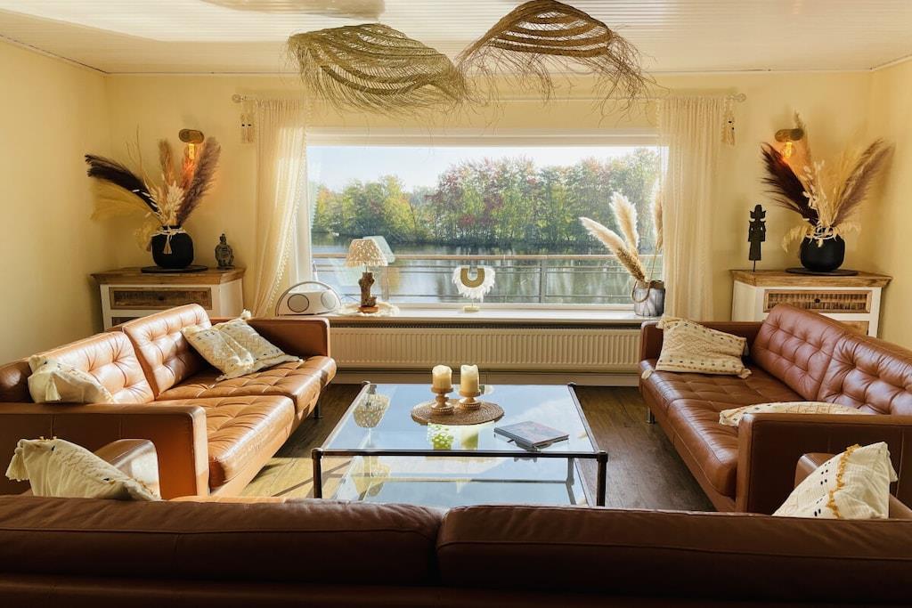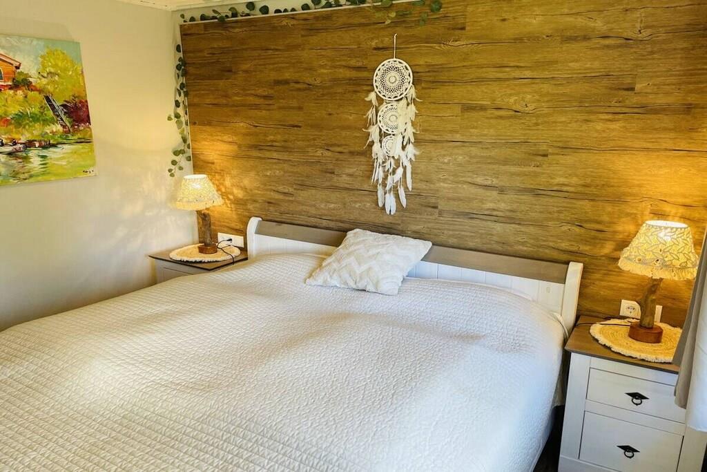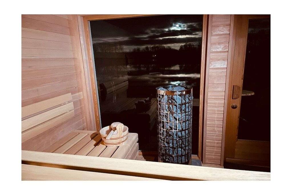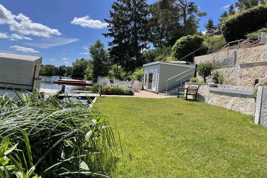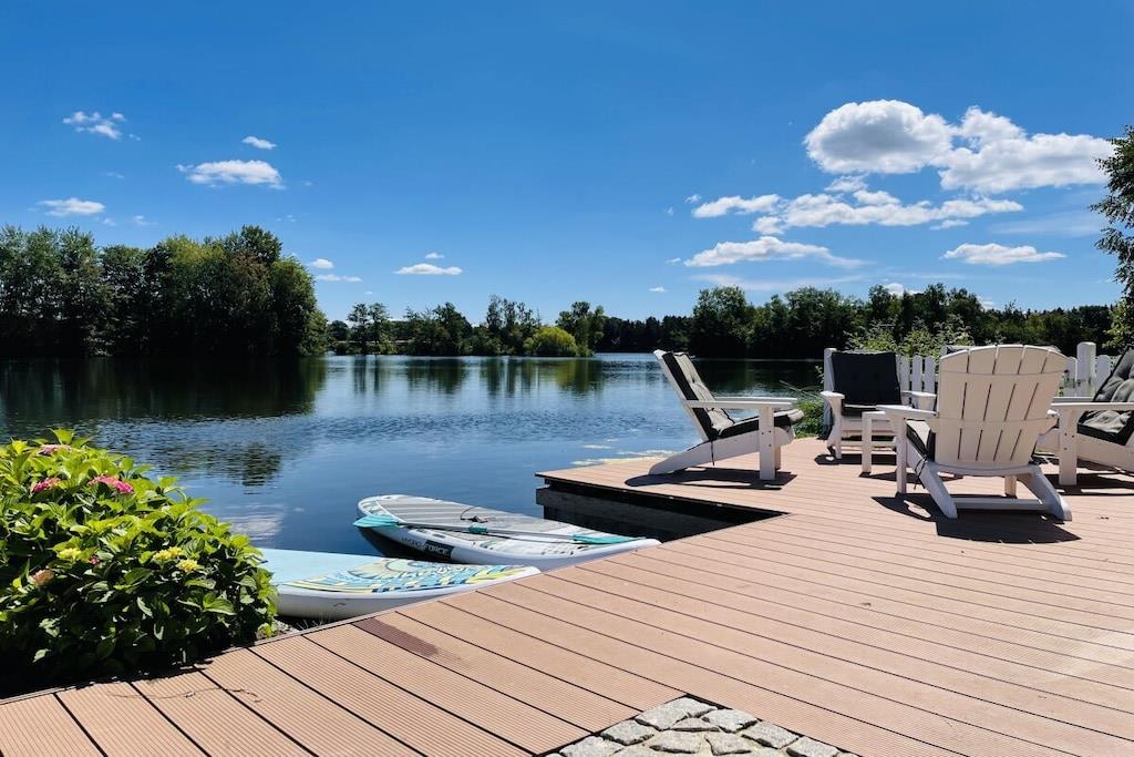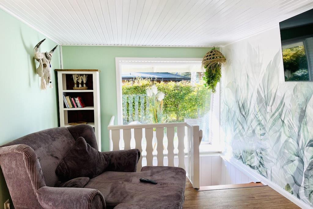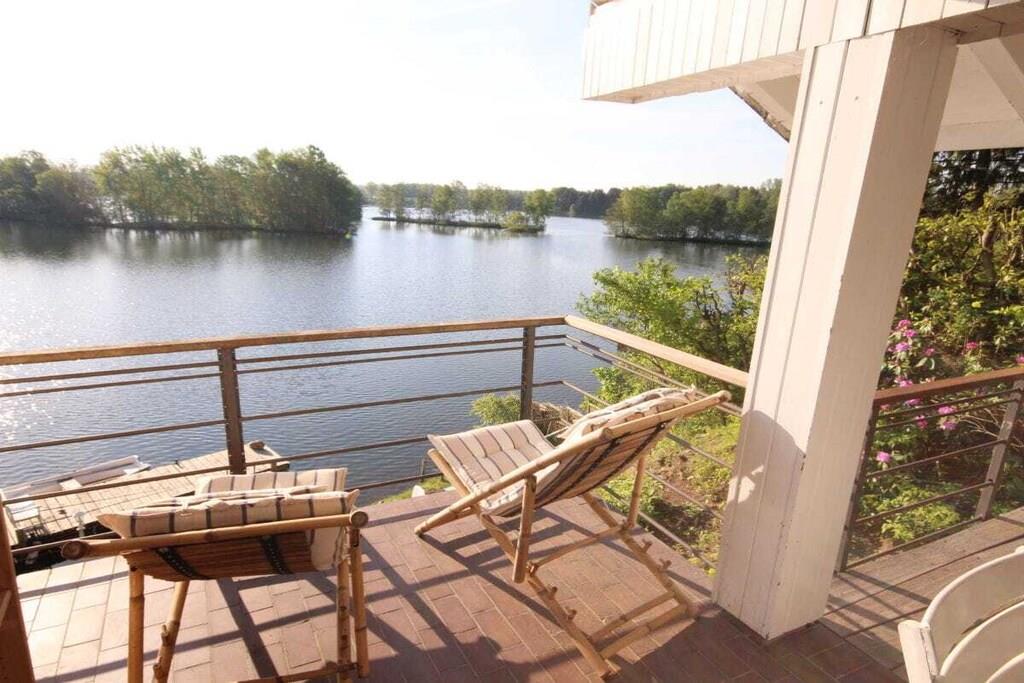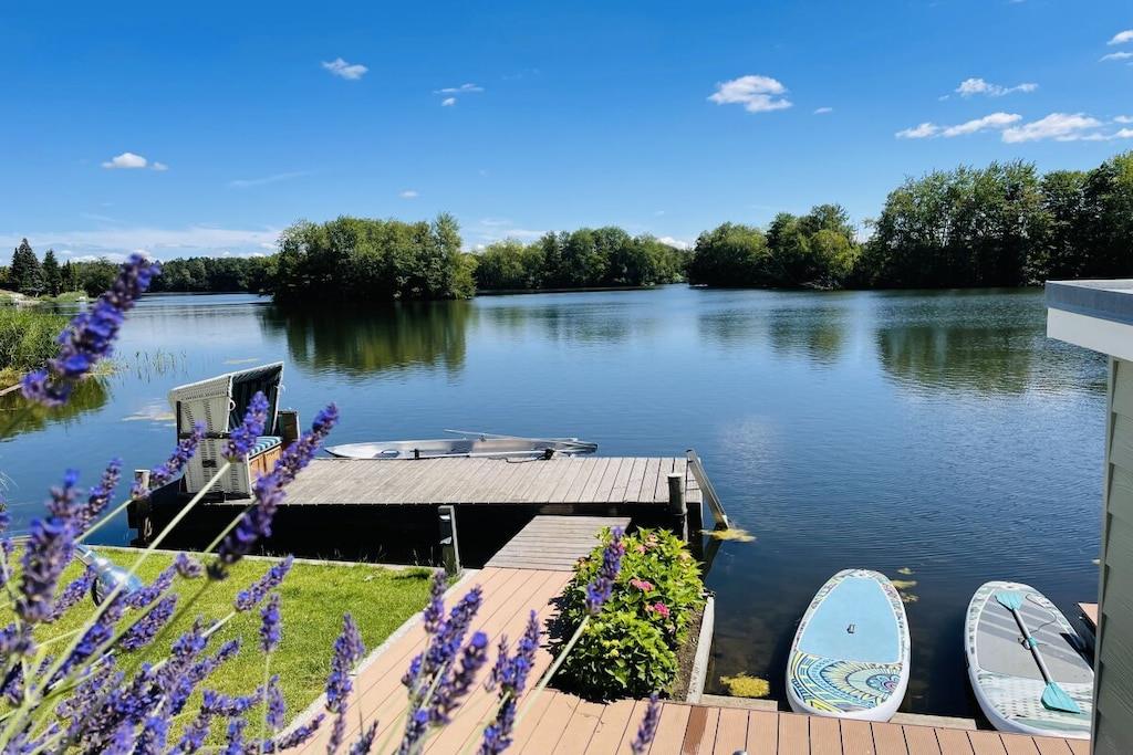 Das Ferienhaus liegt idyllisch in einem großen Garten und bietet auf 130m² Wohnfläche einen lichtdurchfluteten Wohn- und Essbereich mit herrlichem Seeblick, drei Schlafzimmer, eine Küche mit Einbauküche, ein Badezimmer mit Dusche und WC sowie eine Terrasse und einen Balkon. Der gemütliche Wohnbereich ist mit einem Fernseher mit Netflix und einem Bluetooth-Radio ausgestattet. Ein Kaminofen sorgt nach einem Spaziergang für wohlige Wärme. Im Erdgeschoss befinden sich zwei Schlafzimmer. Eine Treppe führt in das Souterrain, wo ein Familienzimmer mit direktem Zugang zu einem Freisitz und Seeblick liegt. Schatten- und Sonnenplätze im Garten laden zur Entspannung ein. Mit dem Ruderboot können Sie den See erkunden.