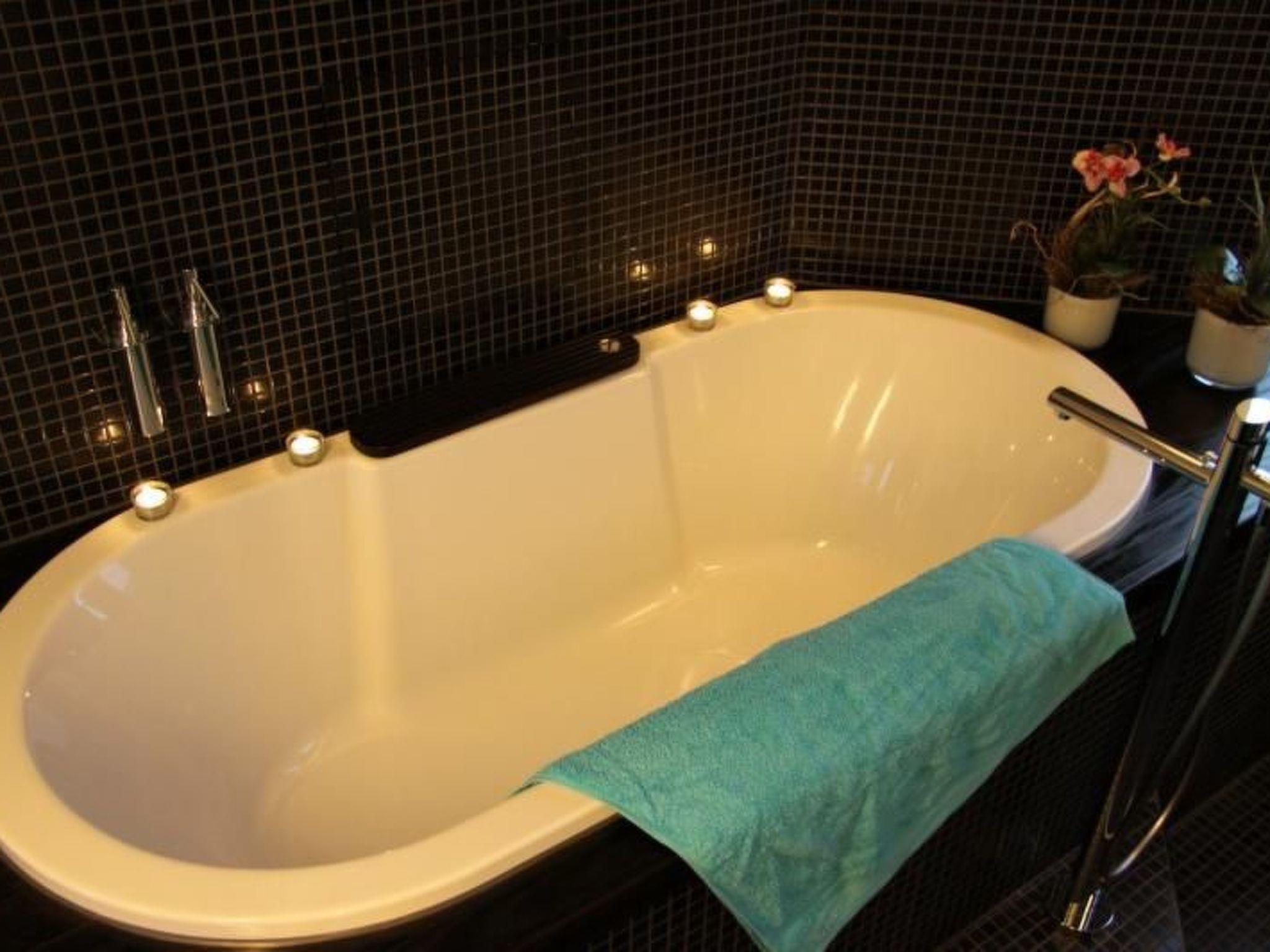 The living room has a pleasant leather suite, a lounger and tasteful furniture adapted to the room. A big TV, a stereo system and a selection of board games are provided. There is a directly adjoining kitchen-diner with a lovely dining corner with a view of the town, which can be separated from the rest of the room by a sliding glass wall. The floor and the worktop in the kitchen are in high-quality granite with harmonious colours. Cooking will be fun in the modern kitchen, comprising crockery and all cooking utensils, a four-ring hob, fridge, dishwasher, oven, coffee machine, kettle and toaster. A little hallway with the entrance area to the apartment leads to the lovely designer bathroom and the bedroom. The bathroom comprises a washbasin with a big mirror, a generous bath, a pleasant rainforest shower with various functions and a WC. Exclusivity, design and a fabulous view are reflected here. A hairdryer and an integrated radio system are provided. The big bedroom with an adjoining dressing area is very cosy. Different lighting can change the mood of the space. The double bed measures 180 x 200cm. There is also an LCD TV here.
