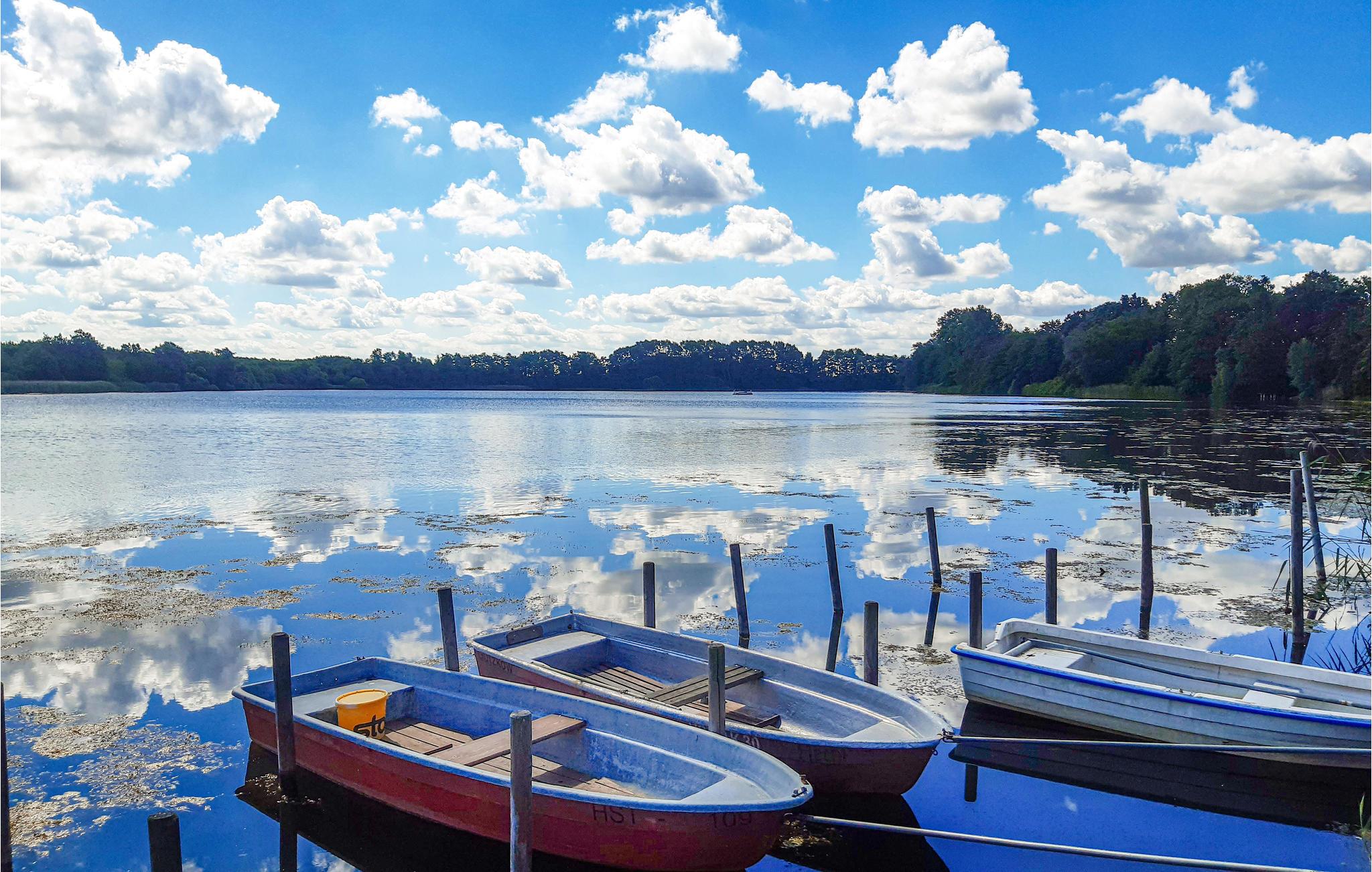 Søer, store marker, floder og kort afstand til havet - der er smukt og grønt i Mecklenburg-Vorpommern. Her kommer I til at bo i Peenetal tæt på Kosenow-søen, hvor der er fantastiske forhold til at bade og nyde solen. Uden for huset finder I en skøn terrasse, hvor I kan sætte jer med dagens måltider, mens I kigger direkte ud på søen.