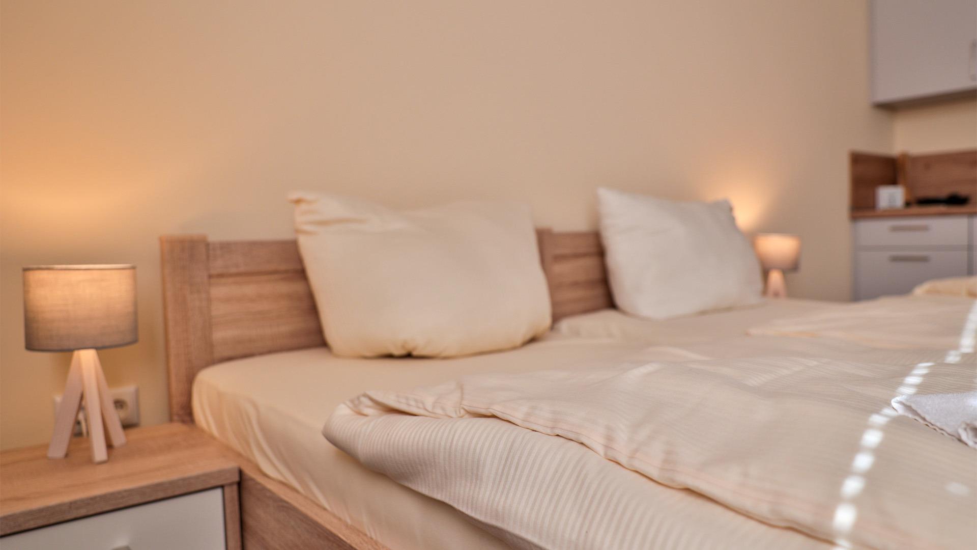 Unsere 20qm große Ferienwohnung "Wolgast" befindet sich in der 1. Etage und ist barrierefrei über einen Fahrstuhl zu erreichen. Das 1 Raum Appartment mit Küche, inkl. privates Familienbad verfügt über ein TV und eine Kochnische.