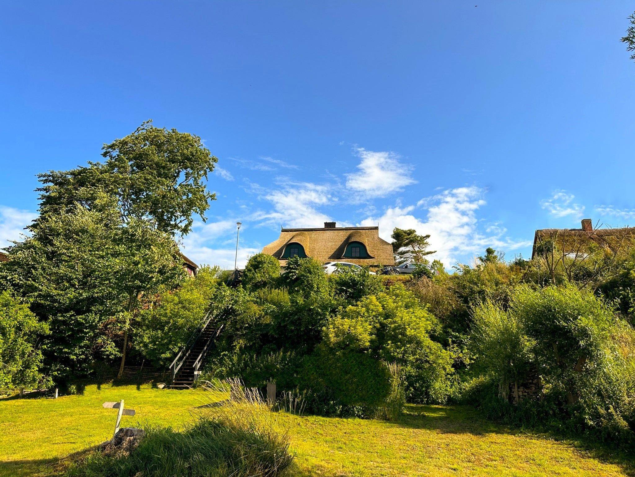 Das Strandhaus am Höft ist ein Reetdach-Doppelhaus von etwa 124 Quadratmetern Größe, verteilt auf drei Etagen. Es liegt auf einem etwa 3.000 Quadratmeter großen, nicht eingezäunten Grundstück mit eigenem Zugang zum Wasser und einem privaten Sandstrand direkt vor der Haustür.