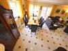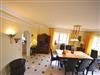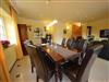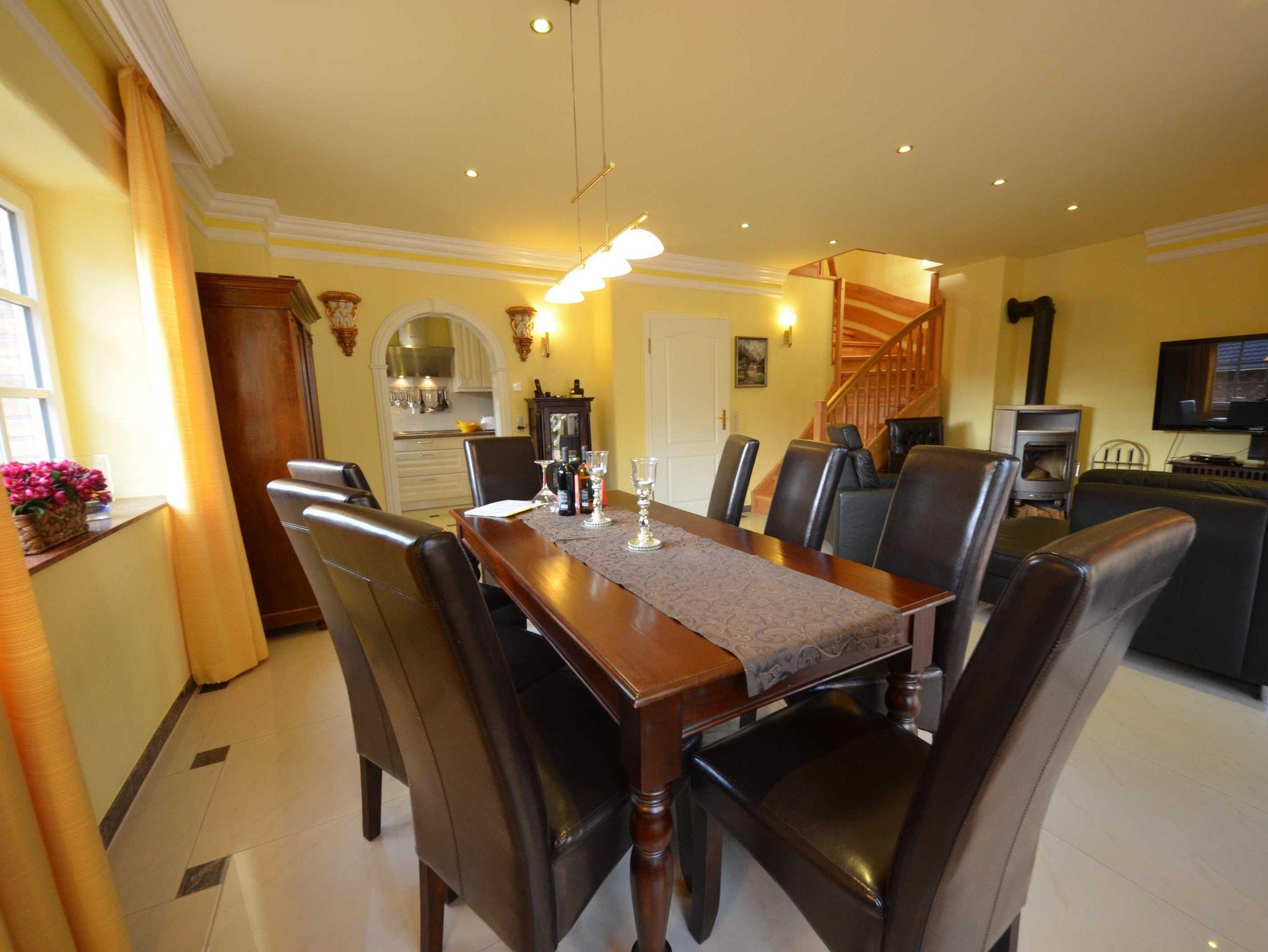 Rustikale Speisetafel mit 8 Leder-Stühlen, großer Hark-Kaminofen, Geschirrschrank, Sat - TV
