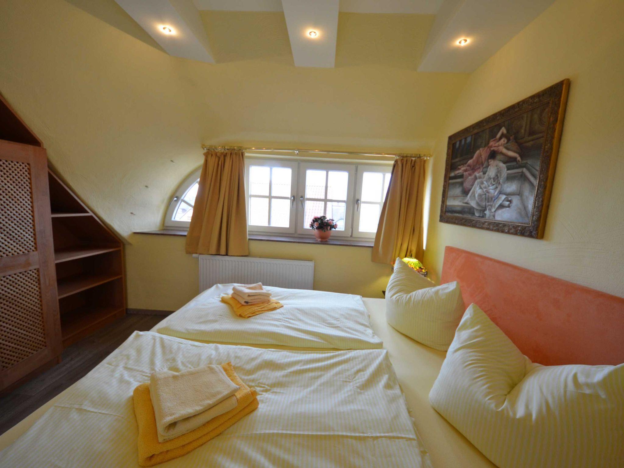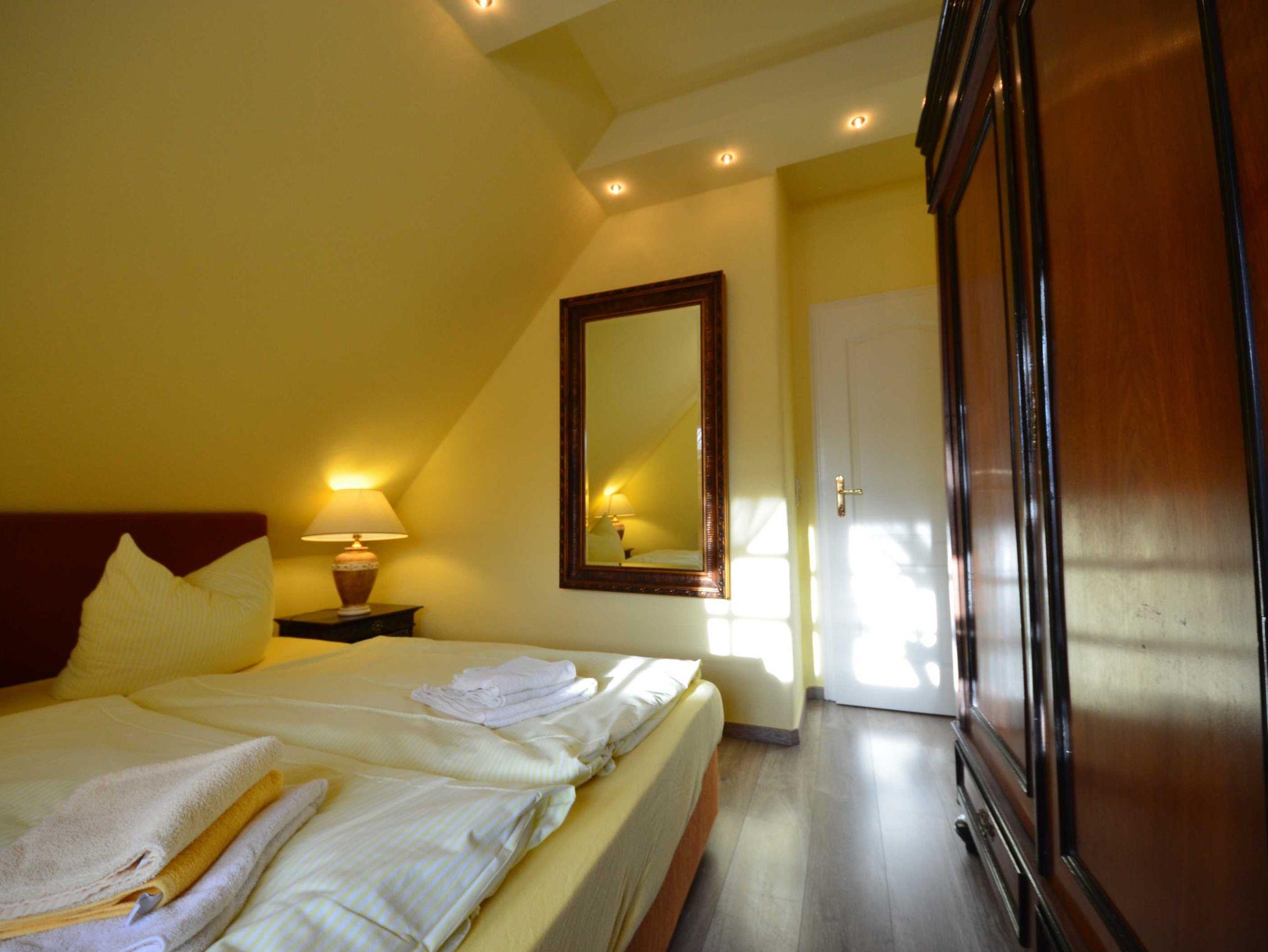 Doppelbetten, Radiowecker, mit Bildern dekoriert, teilweise Einbauschränke. 2 Bäder (1x Dusche, 1x Wanne/Dusche)1 Bad davon en Suite.