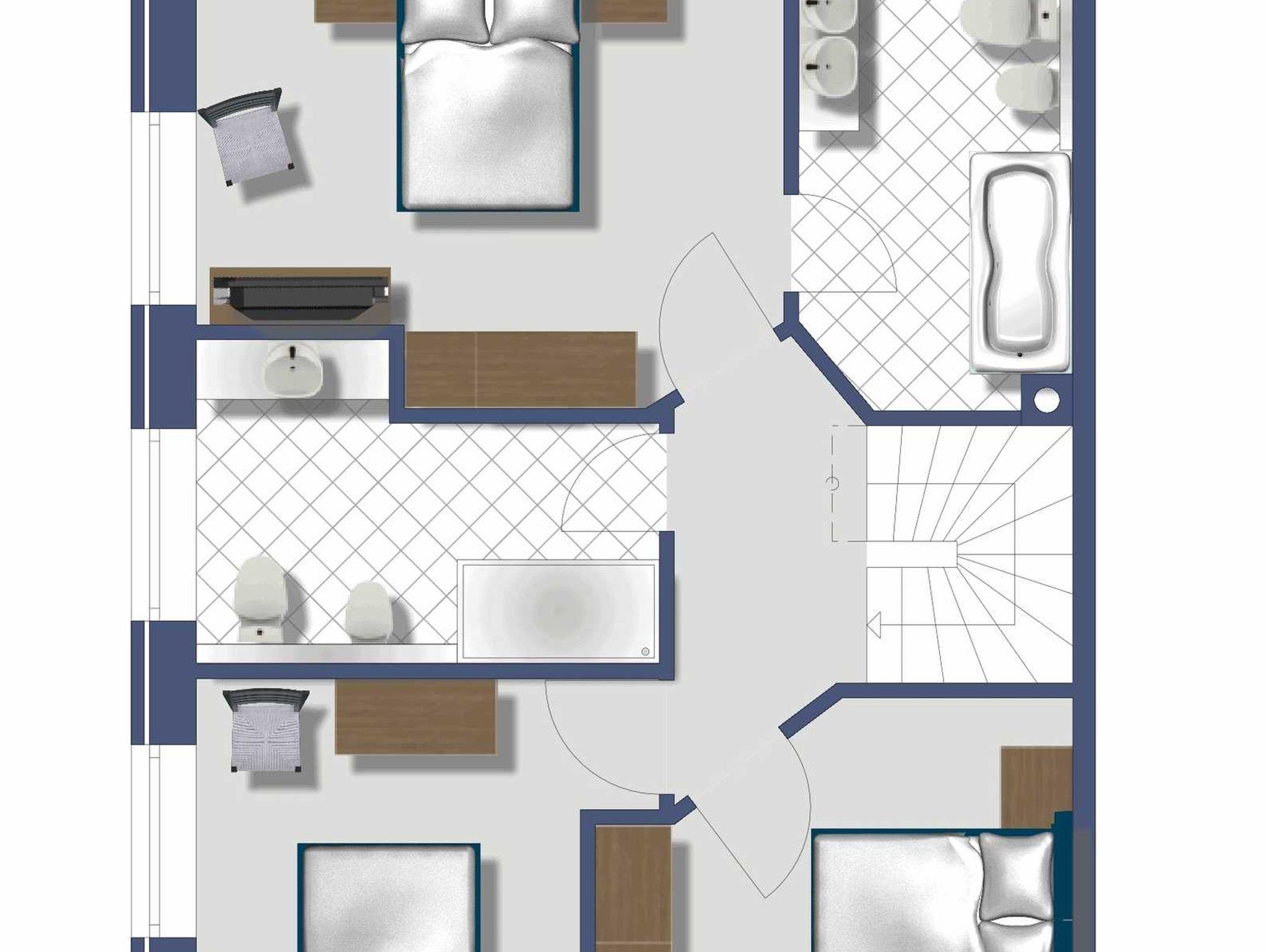Das Haus verfügt über 4 Doppelschlafzimmer, 4 Bäder und Sauna.