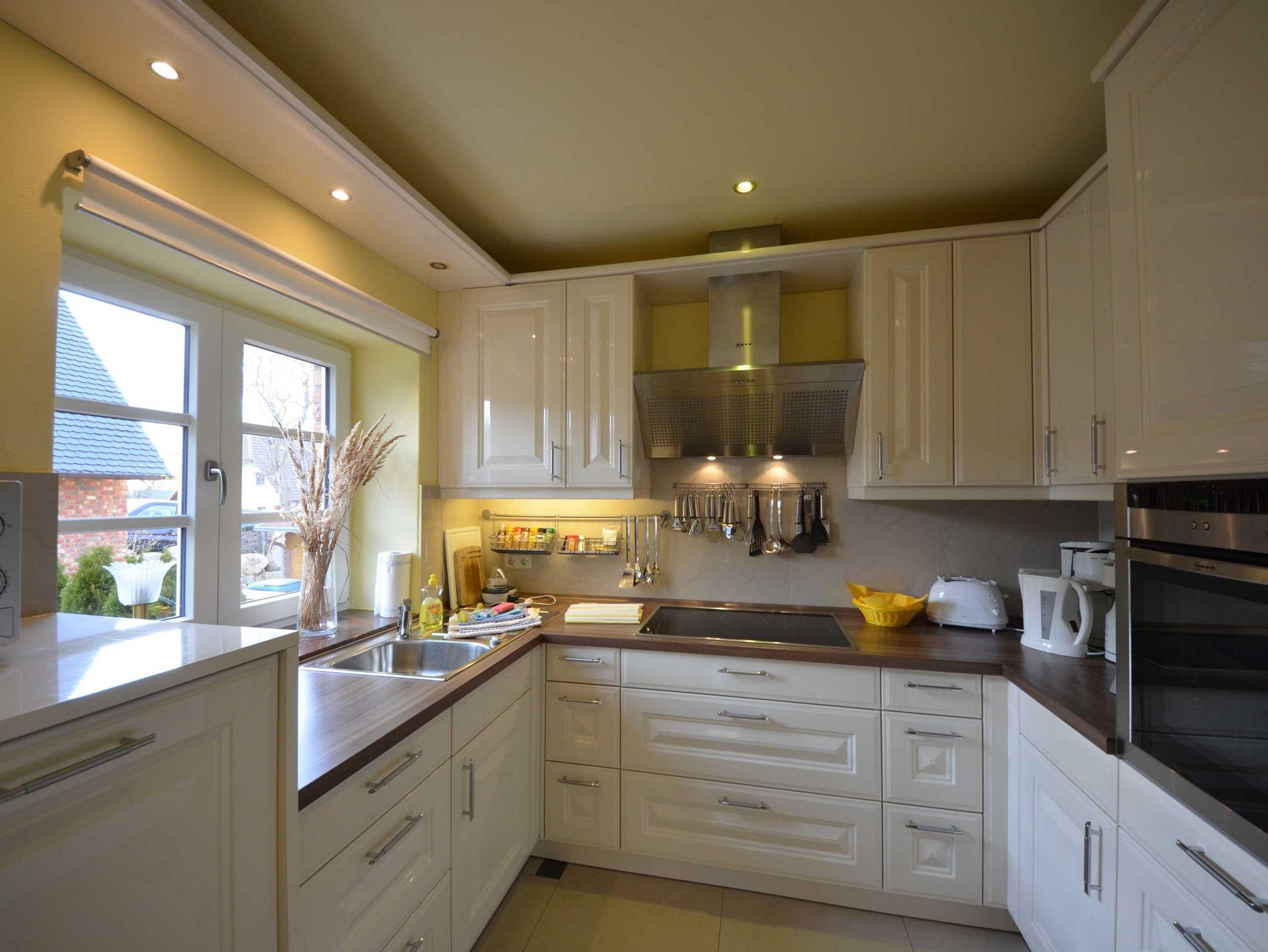 Luxus-Hochglanz-Einbauküche in Magnolie, höher gelegter