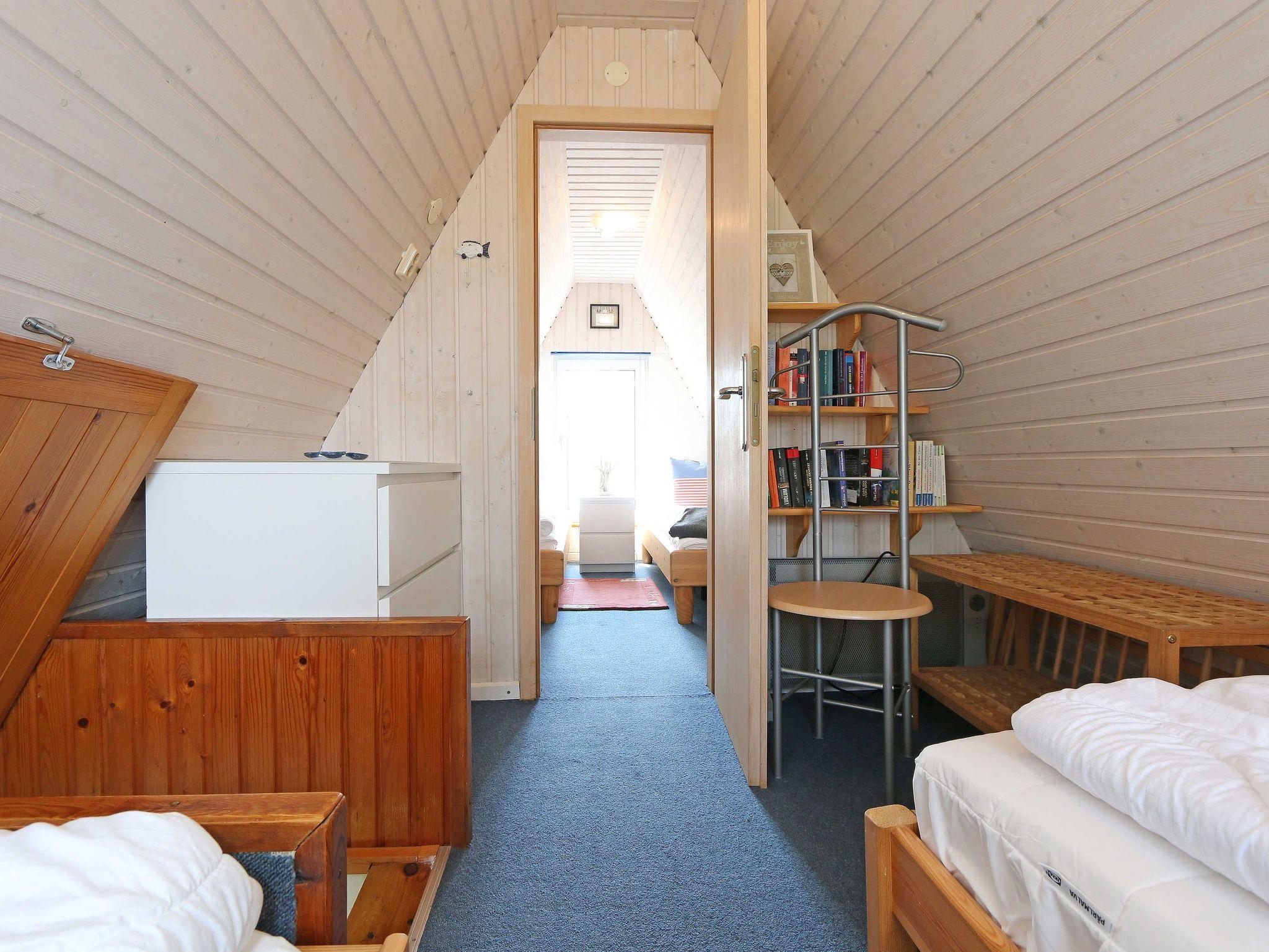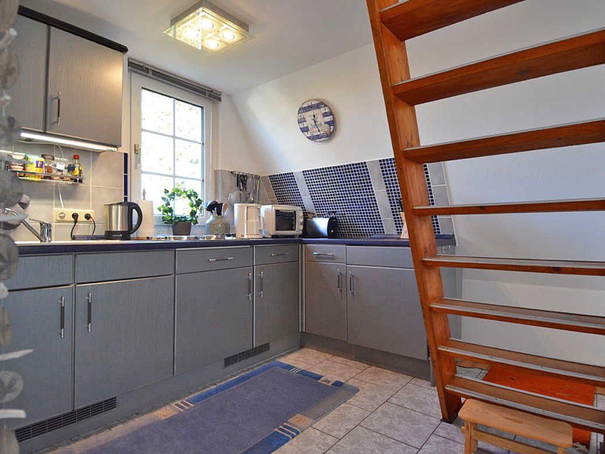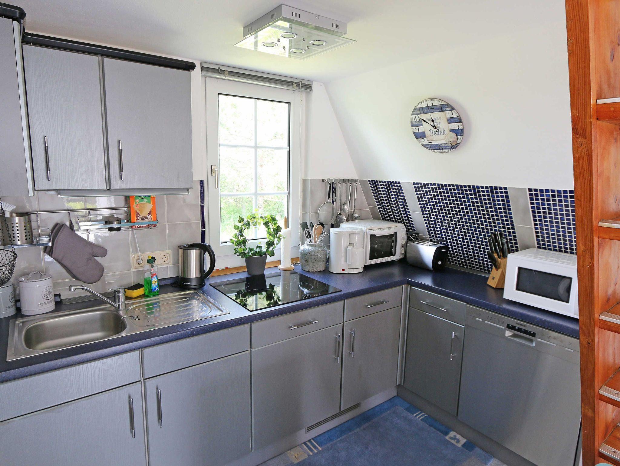 Das reetgedeckte Nichtraucherferienhaus umfasst ca. 50 qm Wohnfläche und erstreckt sich über 2 Etagen. Das Haus bietet Platz für 2 bis 4 Personen. Das Erdgeschoss teilt sich auf in einen offenen Wohnbereich mit einer Couch, Couchtisch und 2 Sesseln, einen Essbereich für 4 Personen. Die moderne Ausstattung wird durch einen Smart-TV mit Sky (Auswahl von Sport, Film, Dokumentation), mit Soundbar nebst Blu-Ray-Player, einer Mini-Kompaktanlage und für gemütliche Abende durch diverse Bücher und Gesellschaftsspiele abgerundet. Ein Internetanschluss (WLAN) ist für Sie zusätzlich inklusive. Angrenzend befindet sich die gut ausgestattete Küchenzeile mit einem 4-Zonen-Ceranfeld, Spülmaschine, Kühlschrank mit Gefrierfach, Mikrowelle, Kaffeemaschine, Wasserkocher, Toaster sowie viele weitere Küchenutensilien. Da in der gesamten Ferienhaussiedlung kein offenes Feuer gestattet ist, stellen wir Ihnen einen Elektrogrill zur Verfügung. Das Badezimmer, welches sich auch im Erdgeschoss befindet, ist mit einer offenen Dusche, einem Fön, einem Waschtisch und einem WC ausgestattet. Vom Wohnbereich gelangen Sie auf die nach Süden ausgerichtete und bestuhlte Terrasse mit Strandkorb und Sonnenschirm. Der dazugehörige Garten umfasst ca. 450 m². Die Terrasse ist zweistufig angelegt wo der untere Teil der Terrasse durch einen Heckenbewuchs nicht einsehbar ist und somit bis in die Abendstunden zum Verweilen einlädt. Durch eine steile Treppe, welche sich im Wohn-/Essbereich befindet, gelangen Sie in das Obergeschoss des Hauses. Hier befinden sich 2 separate Schlafzimmer, mit jeweils einem Doppelbett (1x 1,80m x 2,00m und 1x 1,60m x 2,00m). Für kleinere Kinder steht ein Bettschutzgitter als Fallschutz bereit. Die Räumlichkeiten verfügen über Highboards und Nachttischablagen. Die im Obergeschoss befindlichen Fenster sind mit Insektenschutzgitter und Innenrollos versehen. Auch das Küchen und Badfenster sind mit Insektenschutzgitter bestückt. Haustiere sind leider nicht erlaubt. Ein Wäscheständer sowie ein Fahrradständer stehen für Sie bereit. Ein PKW-Stellplatz befindet sich auf dem Areal der Anlage sowie ein Spielplatz. Für unsere kleinen Gäste stehen 1x Kinderreisebett (ohne Zusatzmatratze und ohne Bett Inlett) sowie 1x Hochstuhl inklusive zur Verfügung. Die Erstausstattung eines Wäschepaketes (komplette Bettwäsche, 1 Duschhandtuch, 1 kleines Handtuch) können Sie bis 14 Tage vor Anreise gegen einen Aufpreis dazu buchen oder durch eigene ergänzen. Ab 2 gebuchten Paketen erhalten Sie einmalig 1 Geschirrhandtuch und 1 Duschvorleger hinzu.