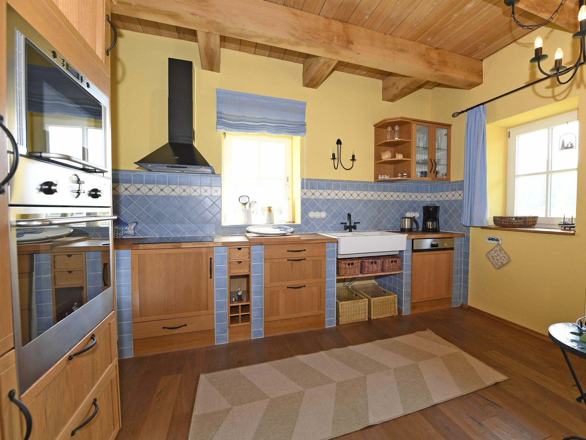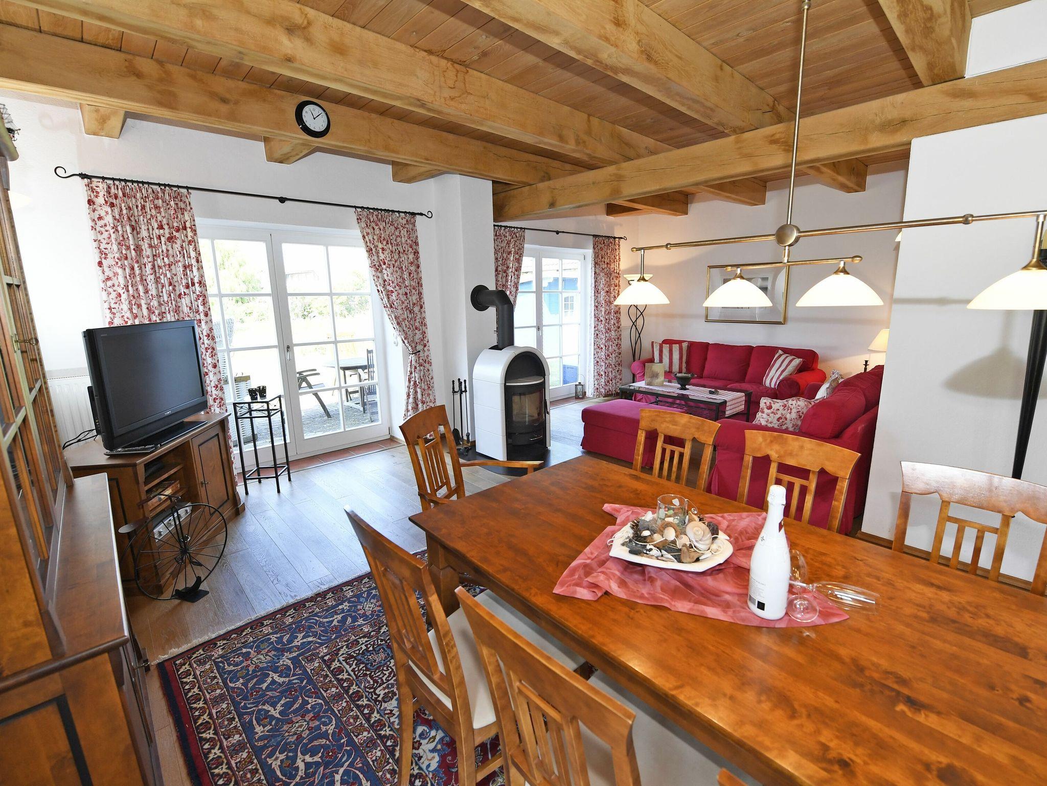 Das Haus verfügt über ein Wohn-/Esszimmer mit einem Esstisch für 6 Personen, einer Sitzecke mit Kaminofen, TV mit DVD - Player und Stereoanlage, eine Küche mit Backofen, Kühlschrank, 4 Platten-Induktionsherd, Mikrowelle und Geschirrspüler sowie zwei Abstellräume mit Waschmaschine und Bügelutensilien.