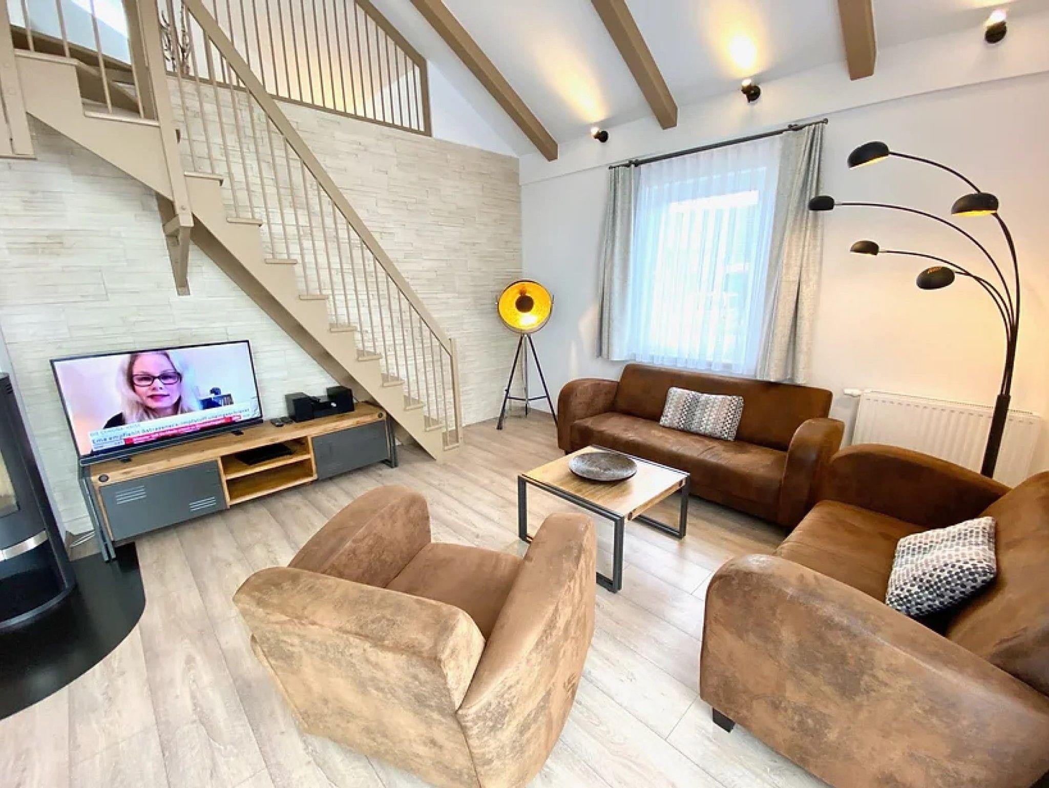 • Großzügiges Wohn- und Esszimmer mit Fußbodenheizung und offener Galerie mit Lesesessel