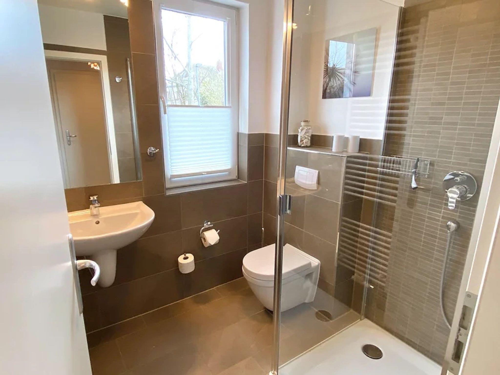 • 2 Badezimmer mit ebenerdiger Dusche, beheiztem Handtuchhalter und Tageslicht