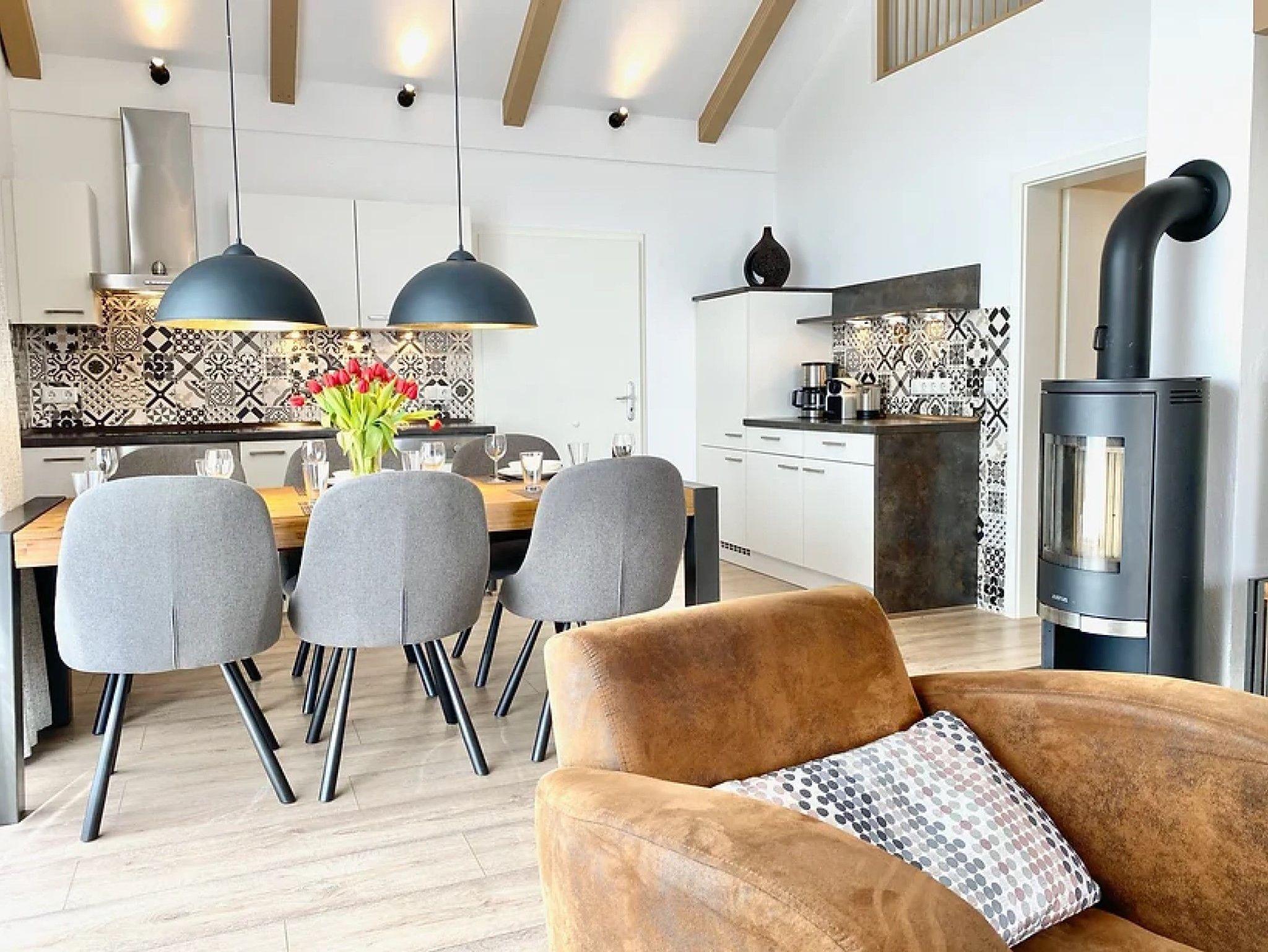 Ein großzügiger Wohn- und Essbereich über zwei Etagen mit offener Galerie bildet das Herzstück der Ferienhäuser SUPERIOR. Ein Kamin garantiert gemütliche Stunden am Abend und die moderne Einrichtung im Loftstil sorgt für ein urbanes Lebensgefühl an der Ostsee. Dank zweier Schlafzimmer mit Doppelbetten im Erdgeschoss und einem dritten Schlafzimmer mit zwei Einzelbetten unterm Dach finden bis zu sechs Personen bequem Platz. Zwei tageslichtdurchflutete Badezimmer sowie eine komplett ausgestattete und großzügige Küche lassen keine Wünsche offen. Jedes Ferienhaus besitzt einen eigenen Garten, der Ihnen exklusiv zur Verfügung steht. Von einigen Häusern genießen Sie zudem einen schönen Blick auf den Jachthafen von Gager.