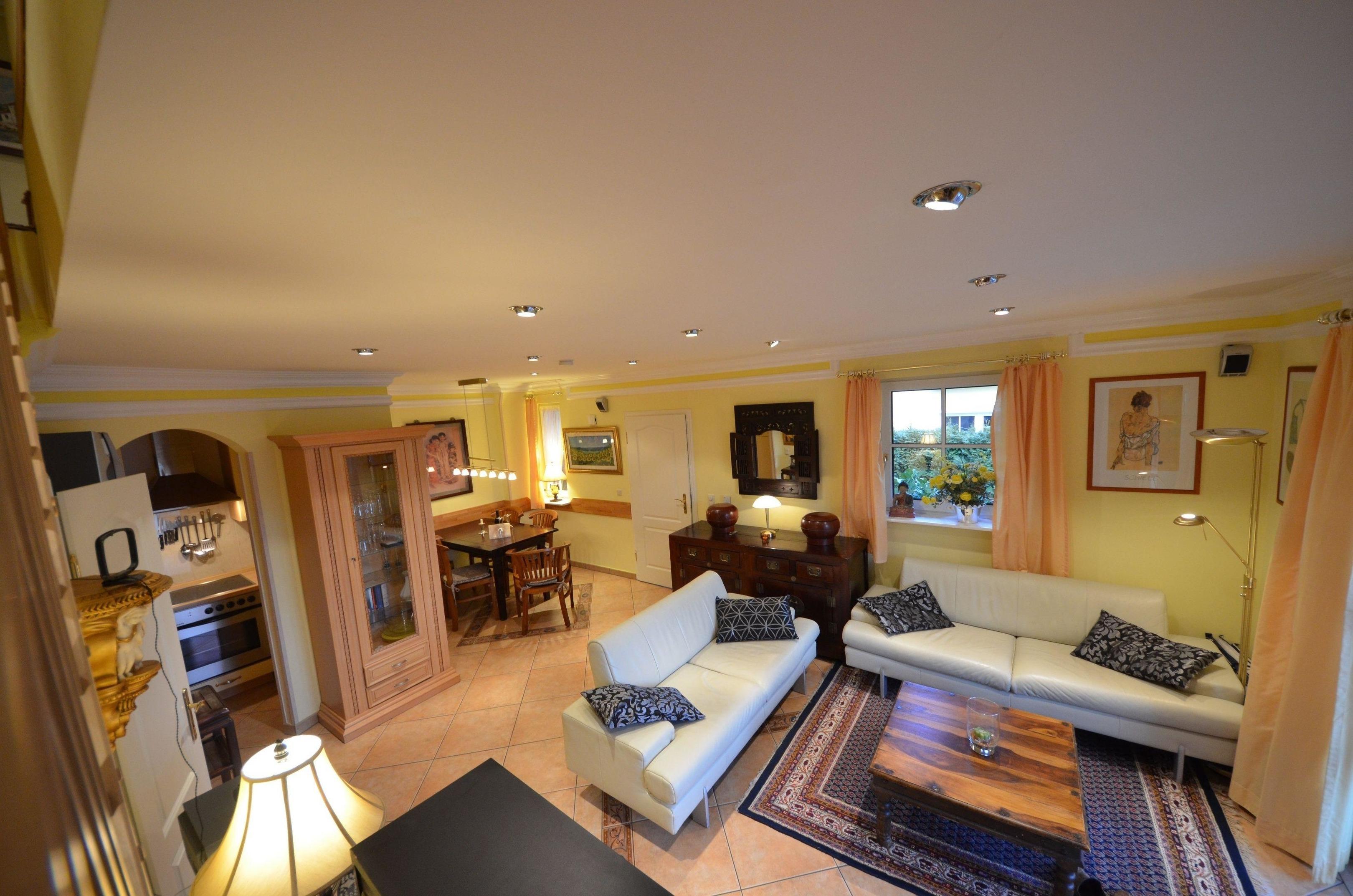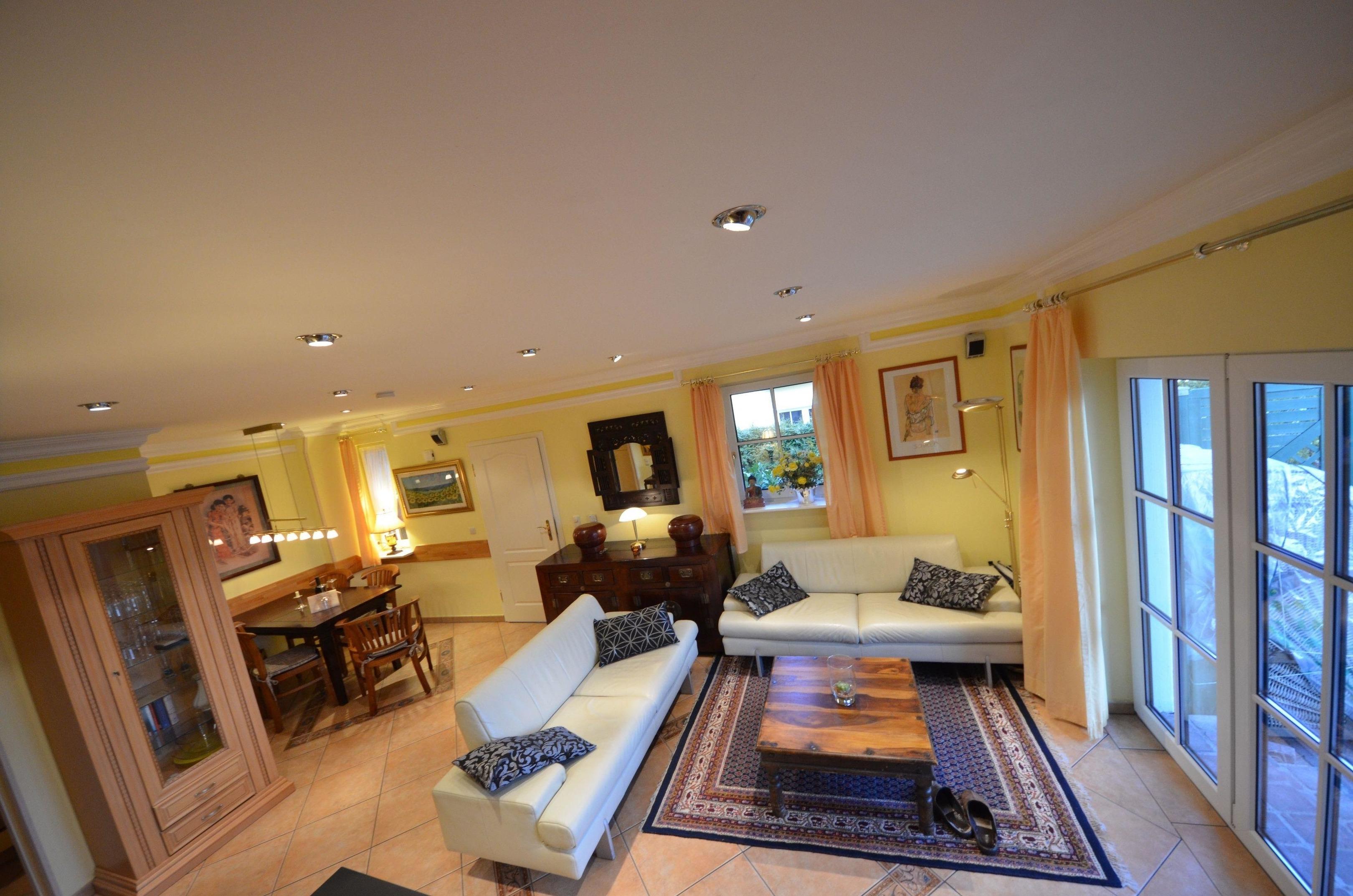 großzügiges Wohn- Esszimmer, schöne Couchgarnitur mit Opiumtisch,