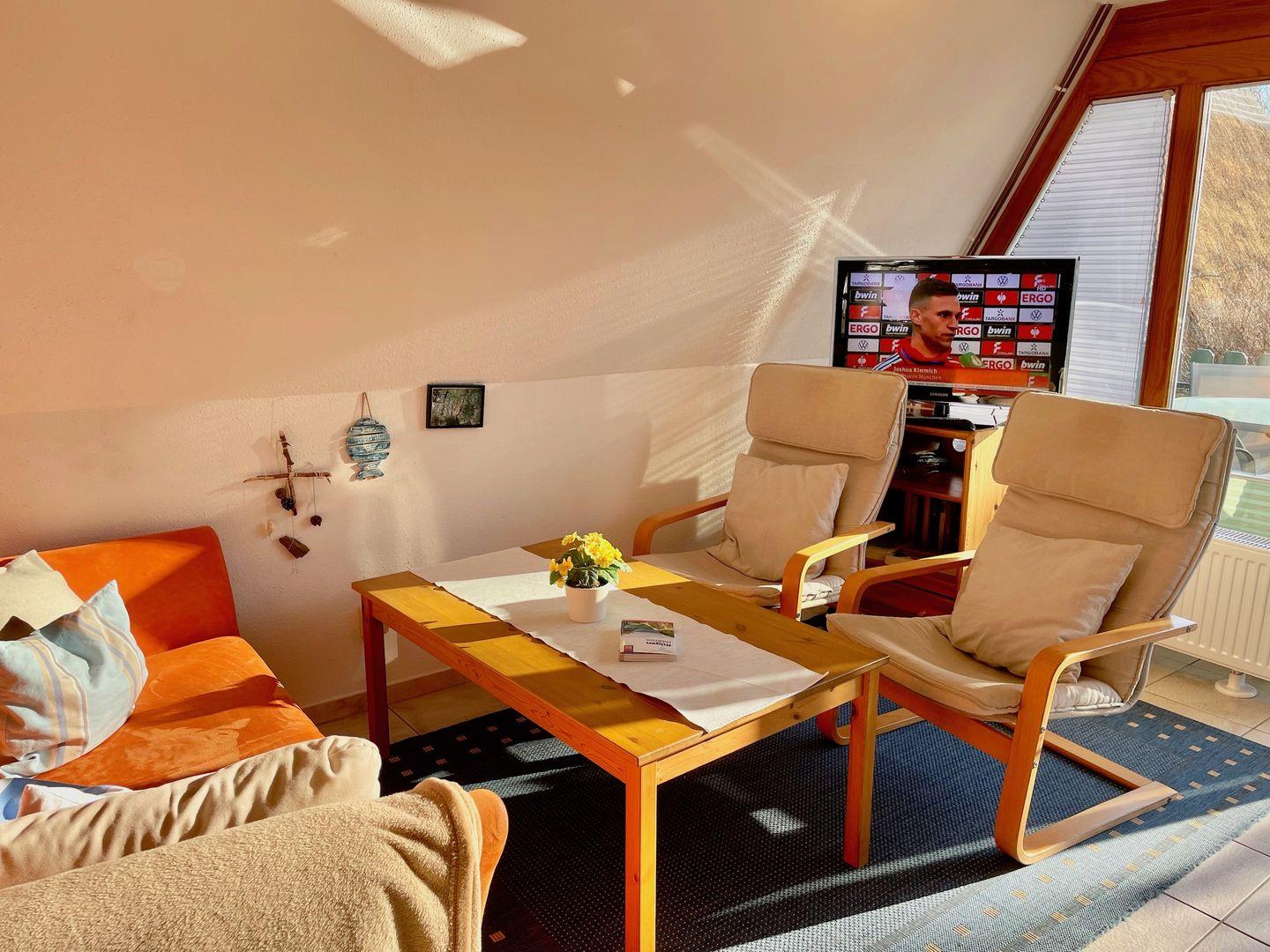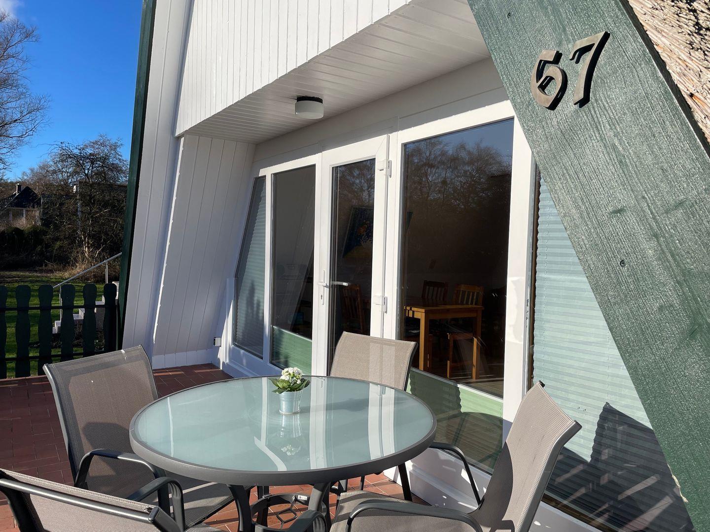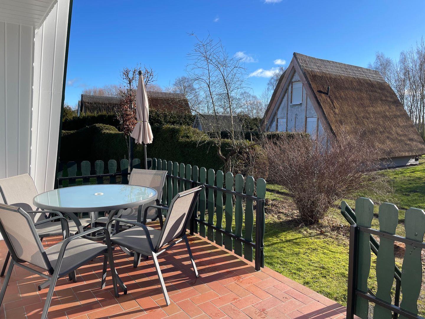 Die schöne Sonnenterrasse mit Gartenmöbeln lädt zum gemütlichen Frühstück, zum Sonnen oder Grillen mit dem hauseigenen Elektrogrill ein.