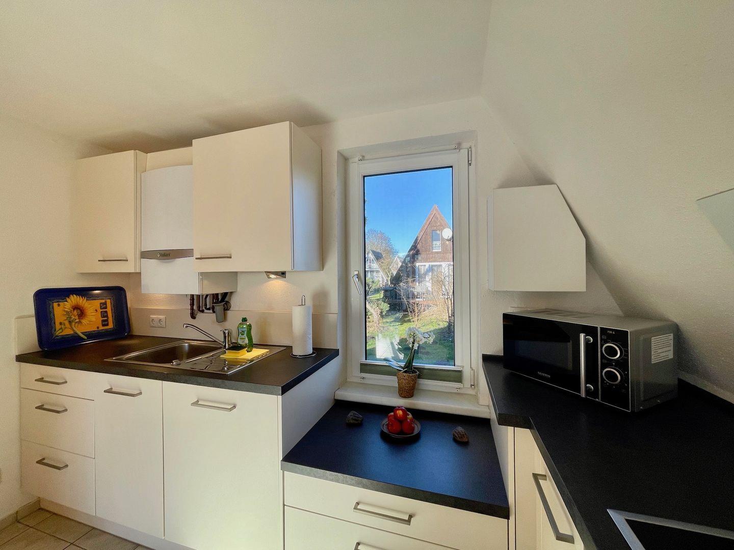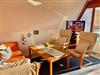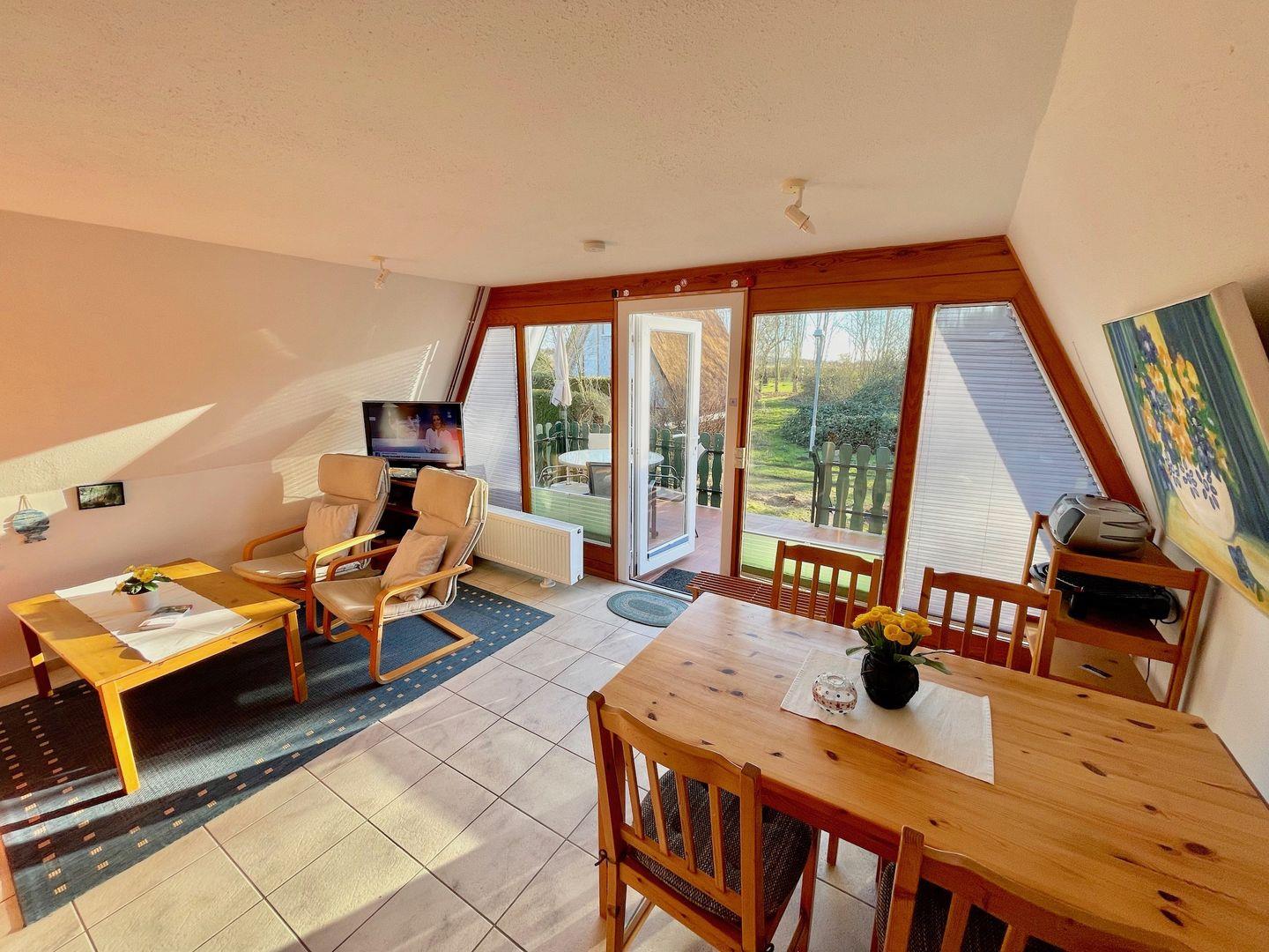 Im Erdgeschoss verfügt sie über einen Wohn-Essbereich mit offener Küche und ein Duschbad. Die Küche verfügt über einen Herd mit Cerankochfeld und Backofen, einen Kühlschrank mit Gefrierfach sowie Geschirrspüler, Mikrowelle, Wasserkocher, Kaffeemaschine, Toaster und diverse Küchenutensilien. Zur Unterhaltung nutzen Sie einen Flachbild-TV und einen Blu-ray Player mit CD/Radio-Funktion.