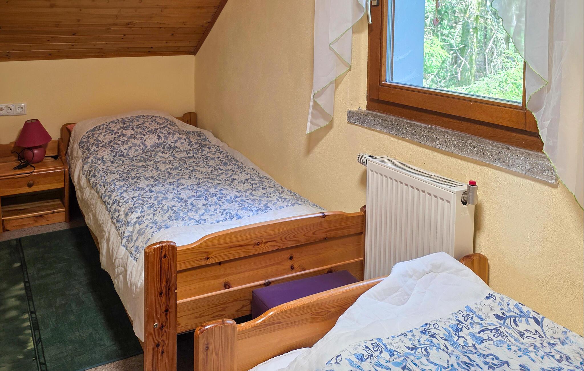 Her bor I i et velplejet feriehus lidt uden for byen, på en fredelig grund ved skoven. Her kan I dyrke ren afslapning og lade batterierne op, mens I nyder stilheden og den vidunderlige udsigt over enge, marker og bjergene. Her, i en højde på over 600 m.o.h., nyder I godt af den forfriskende bjergluft om sommeren, og om vinteren er der sne lige uden for jeres dør. Her er I også på rette sted, hvis I vil have hunden med på ferie, da haven er indhegnet og der er gode muligheder for at gå lange ture med jeres firbenede ven. Der er en lidt stejl trappe til soveværelserne. Om vinteren kan I ikke parkere direkte ved huset, men ejeren organiserer gerne transport af jeres bagage fra parkeringspladsen 800 m herfra.