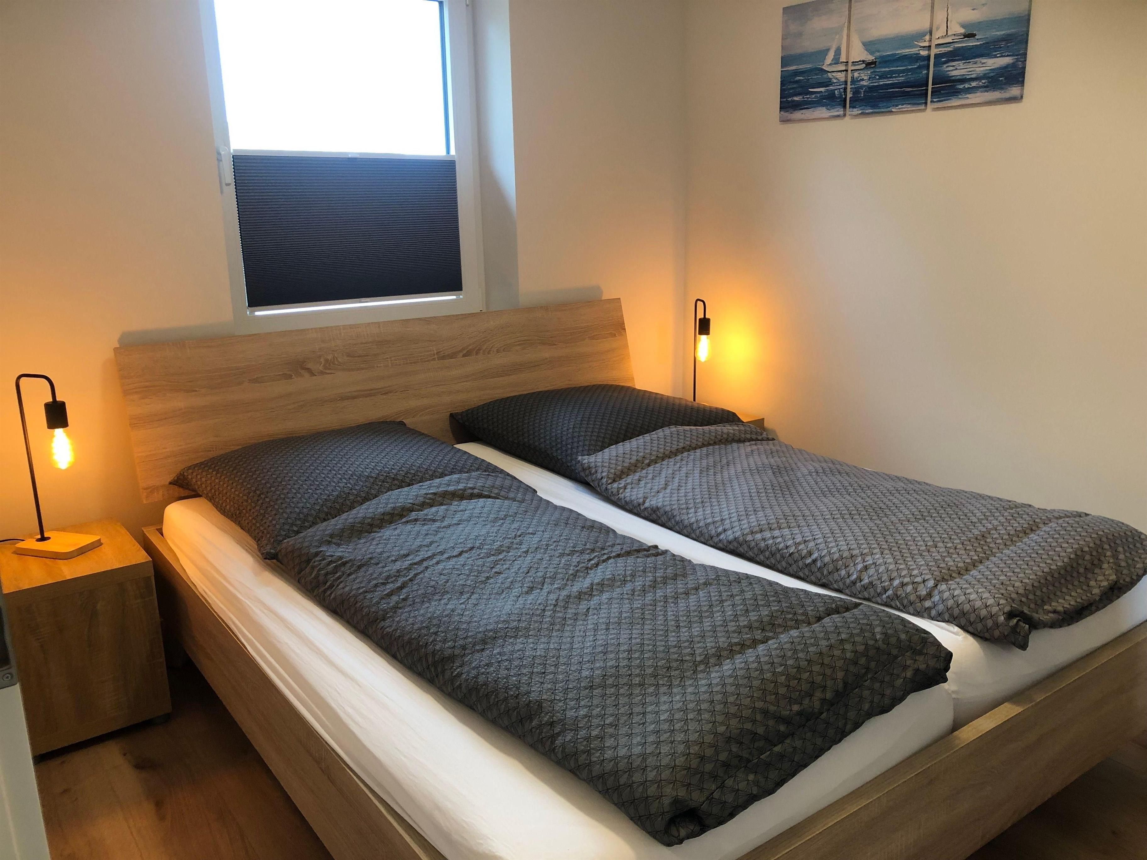 Das Haus bietet neben einem Elternschlafzimmer mir Doppelbett auch ein Kinderschlafzimmer mit einem Etagen- und einem EInzelbett. Jedes Schlafzimmer verfügt über einen eigenen Kleiderschrank.