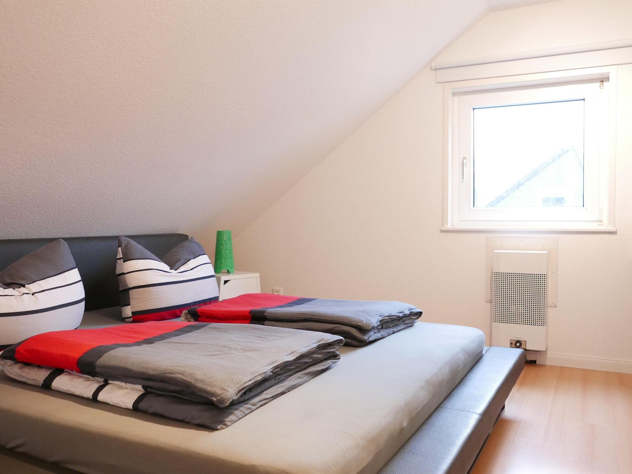 • Ein großes Schlafzimmer mit Doppelbett, ein kleines Schlafzimmer mit zwei Einzelbetten.