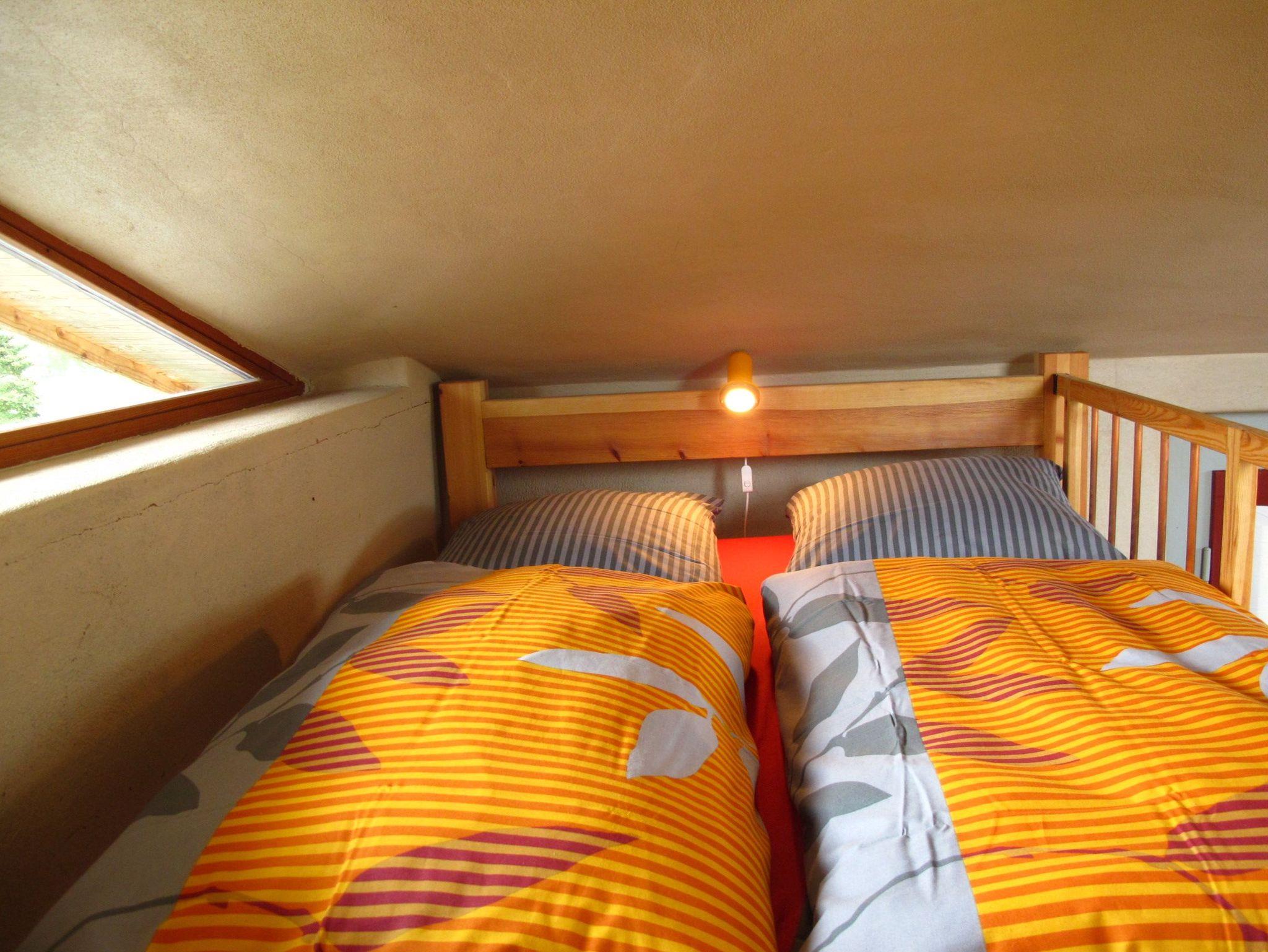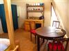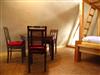 Eingerichtet ist das Zimmer mit einem 2-Etagen-Bett (Liegefläche 160 x 200cm + 140 x 200 cm), einem ausziehbaren Tisch, Stühlen und einem Schrank. In der im Zimmer integrierten kleinen Küche können Sie sich als Selbstversorger Ihr individuelles Frühstück zubereiten. Dazu stehen Ihnen ein Kühlschrank, Wasserkocher, Toaster, Geschirr usw. zur Verfügung.