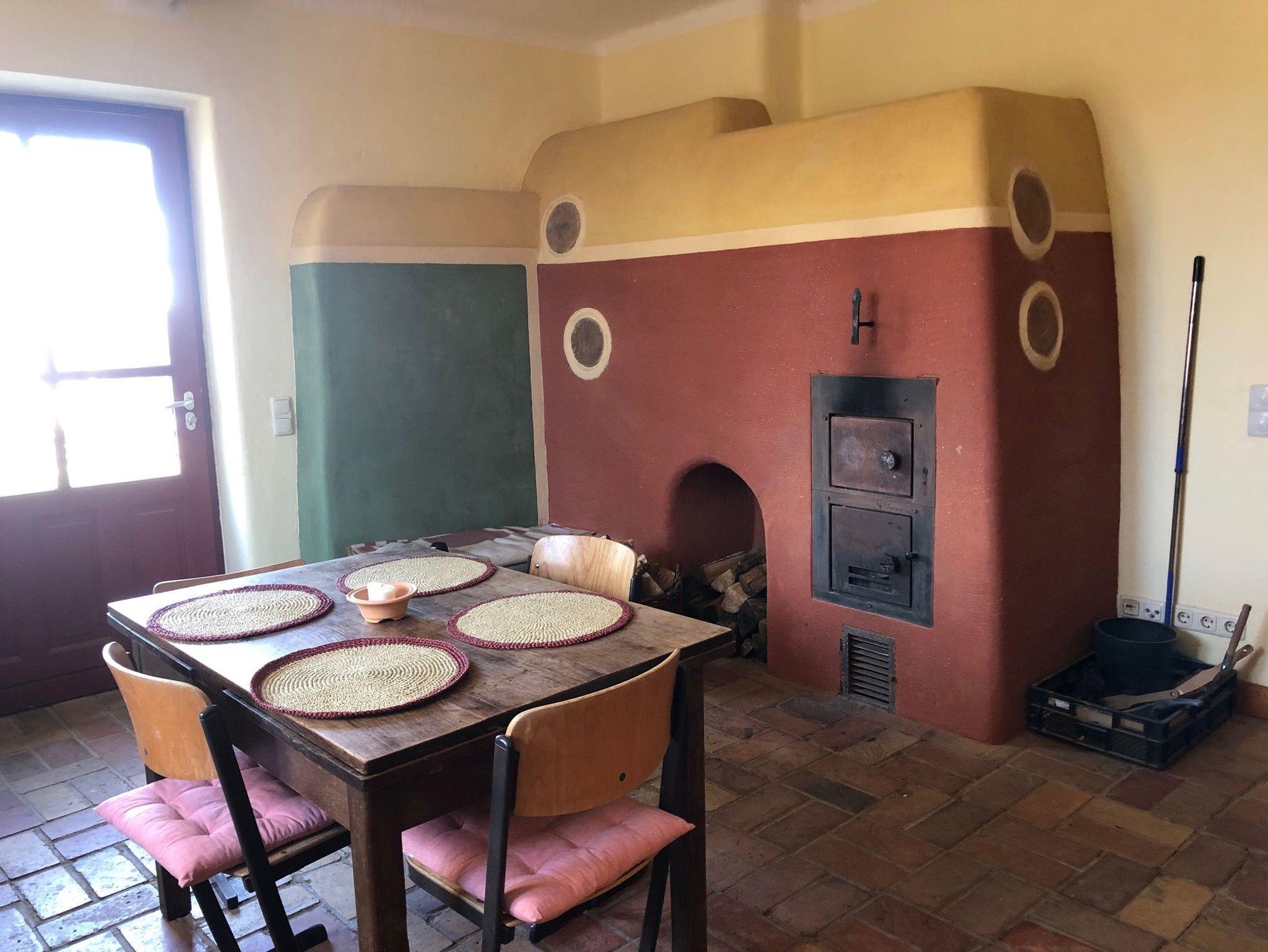 Sie buchen eines von 5 kleinen Einzelzimmern und nutzen gemeinsam mit den anderen Gästen das Bad und die Küche. Ein großer Lehmofen sorgt für Wärme in der Küche, ein Badeofen für warmes Wasser.