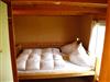 Unser Wohnwagen 5 bietet insgesamt Platz für bis zu 3 Personen und verfügt über 2 getrennte Räume. Die Miniküche ist einfach ausgestattet und ohne fließend Wasser, aber es gibt einen geteilten Kühlschrank und Elektroheizkörper zur Beheizung.