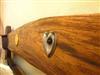 Das Doppelbett (160 x 200 cm) wurde von einem Holzgestalter aus Teilen uralter Webstühle, in Kombination mit Metall und Stein, von Hand gefertigt.