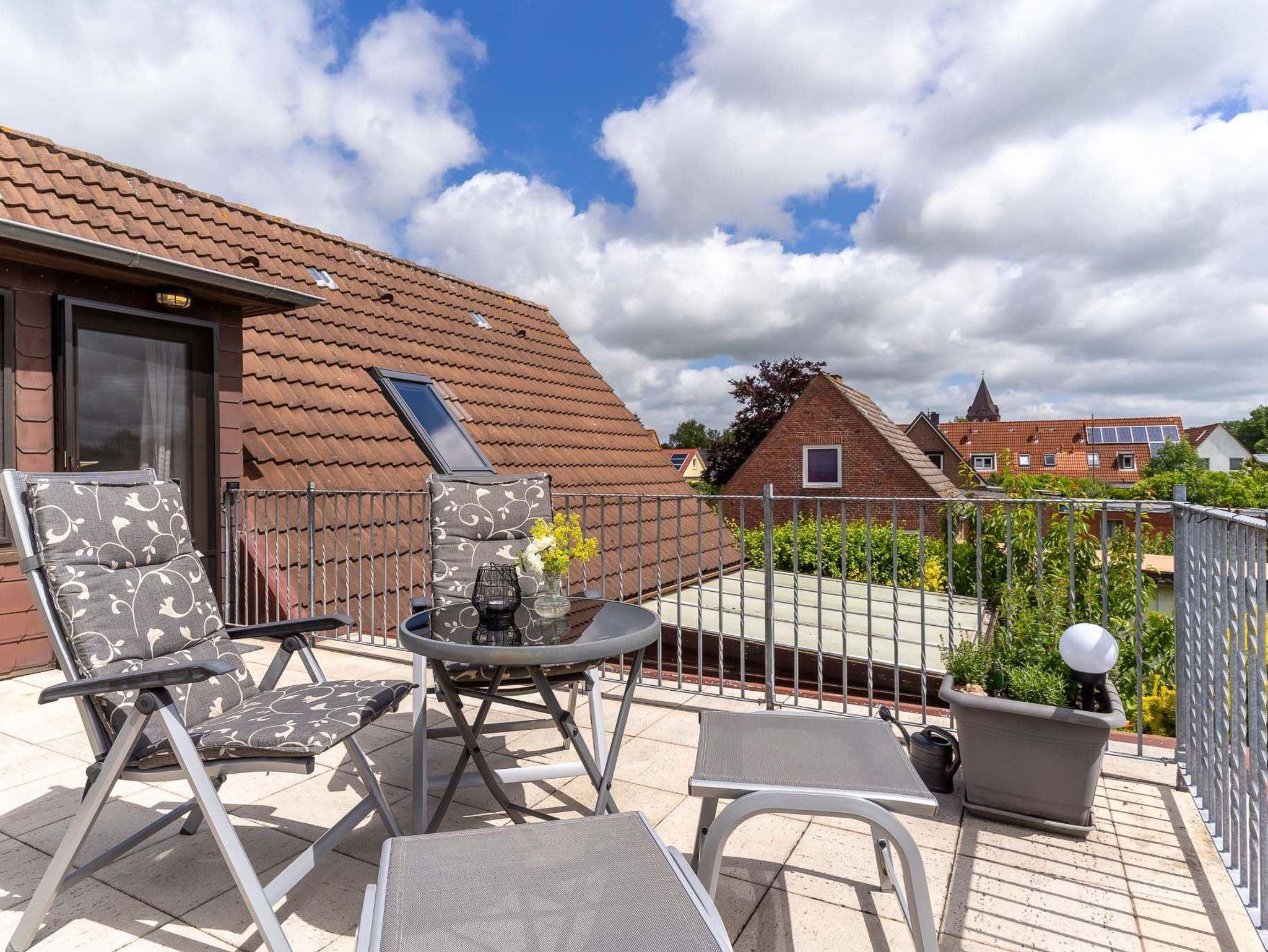 Die Wohnung verfügt über einen PKW-Stellplatz und einen großen möblierten Balkon