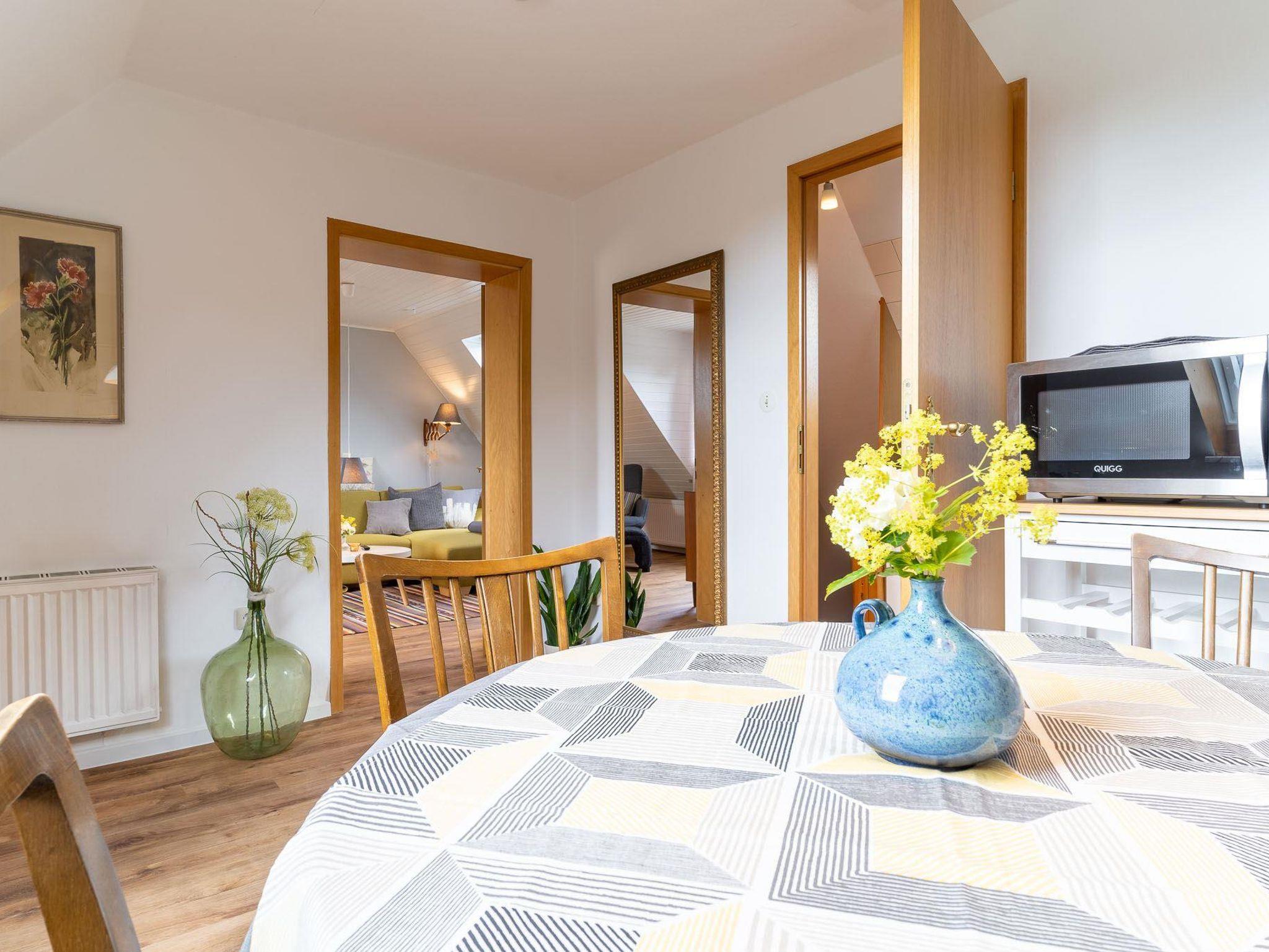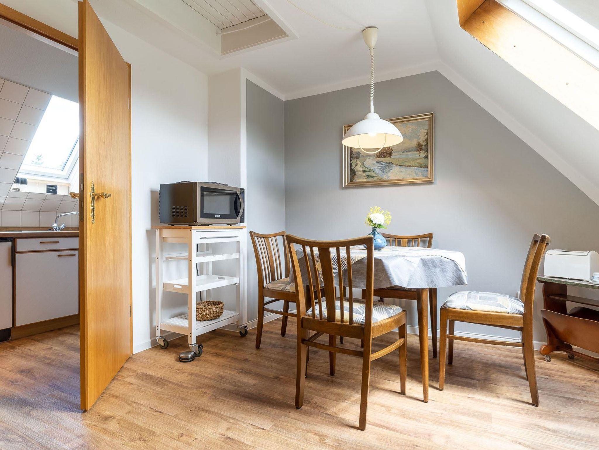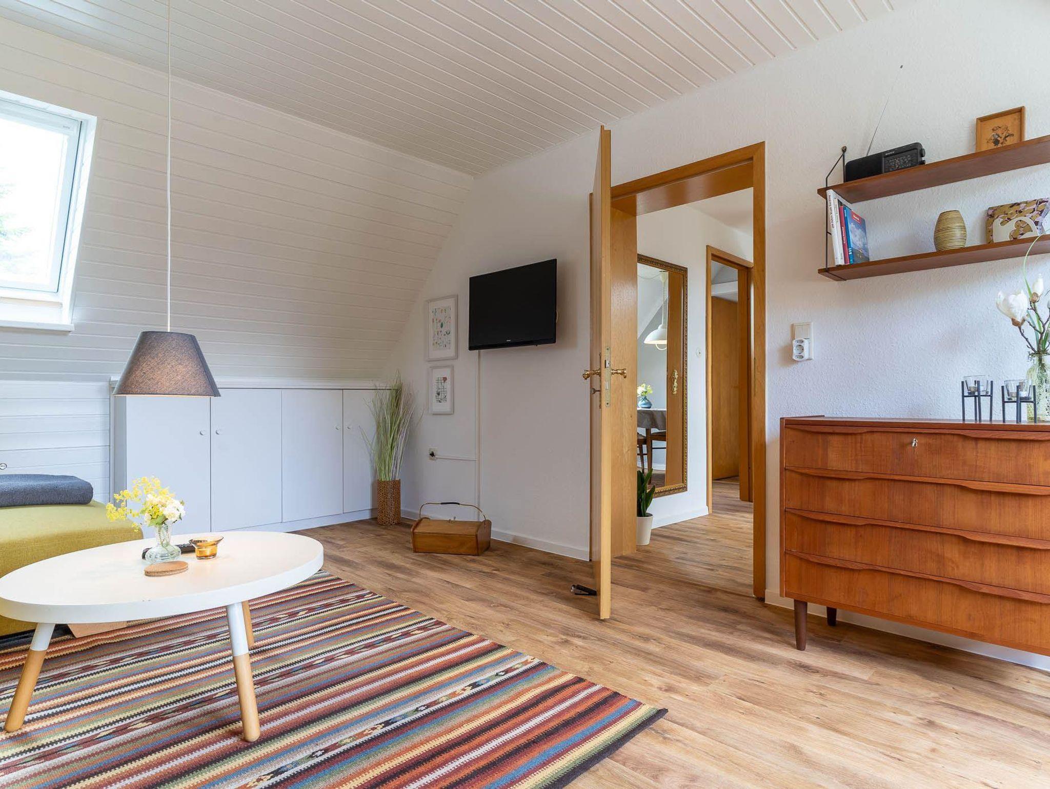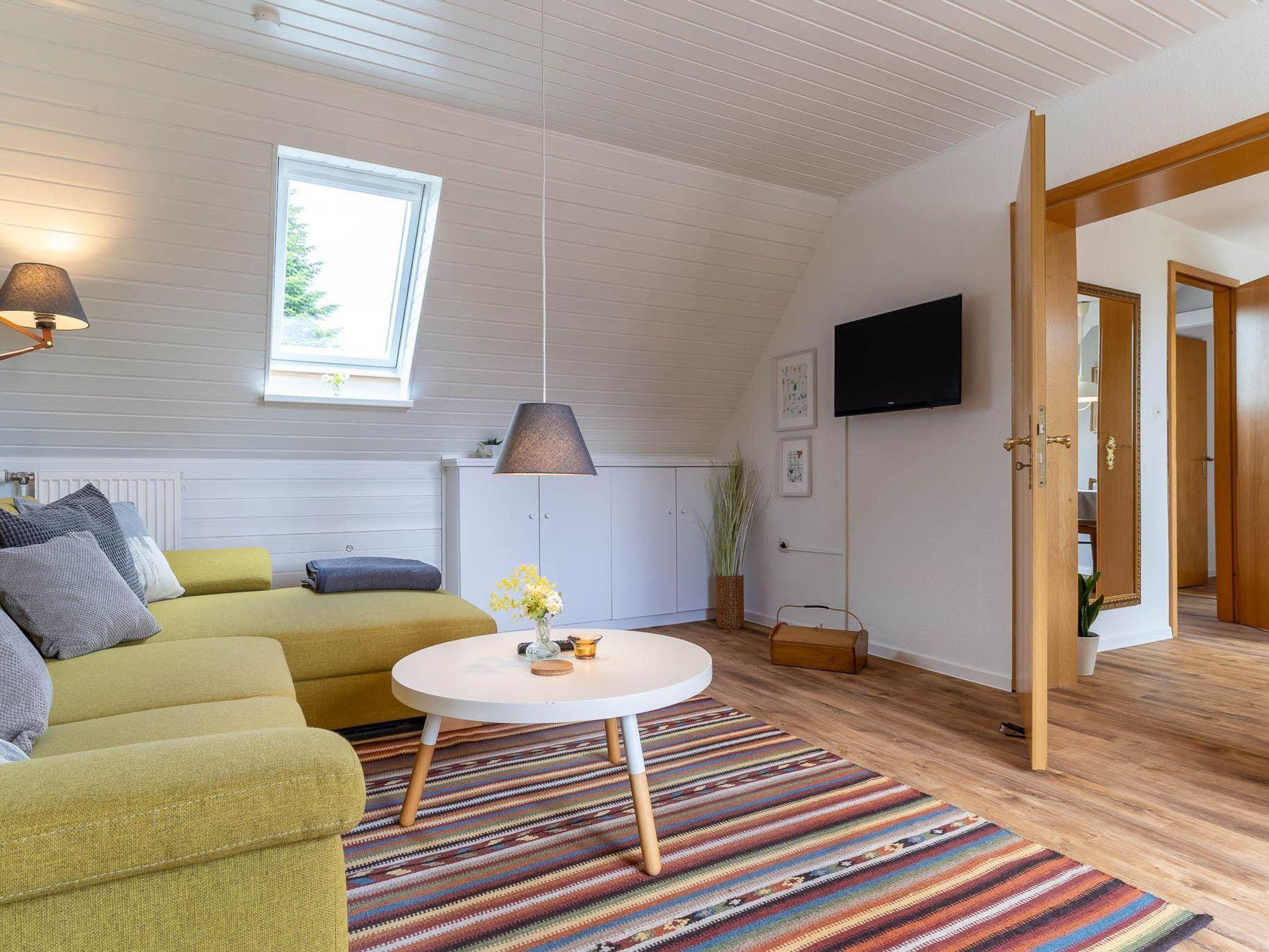 Die ca. 50qm große Ferienwohnung befindet sich im 1. Obergeschoss und ist für 2 Personen ausgestattet.