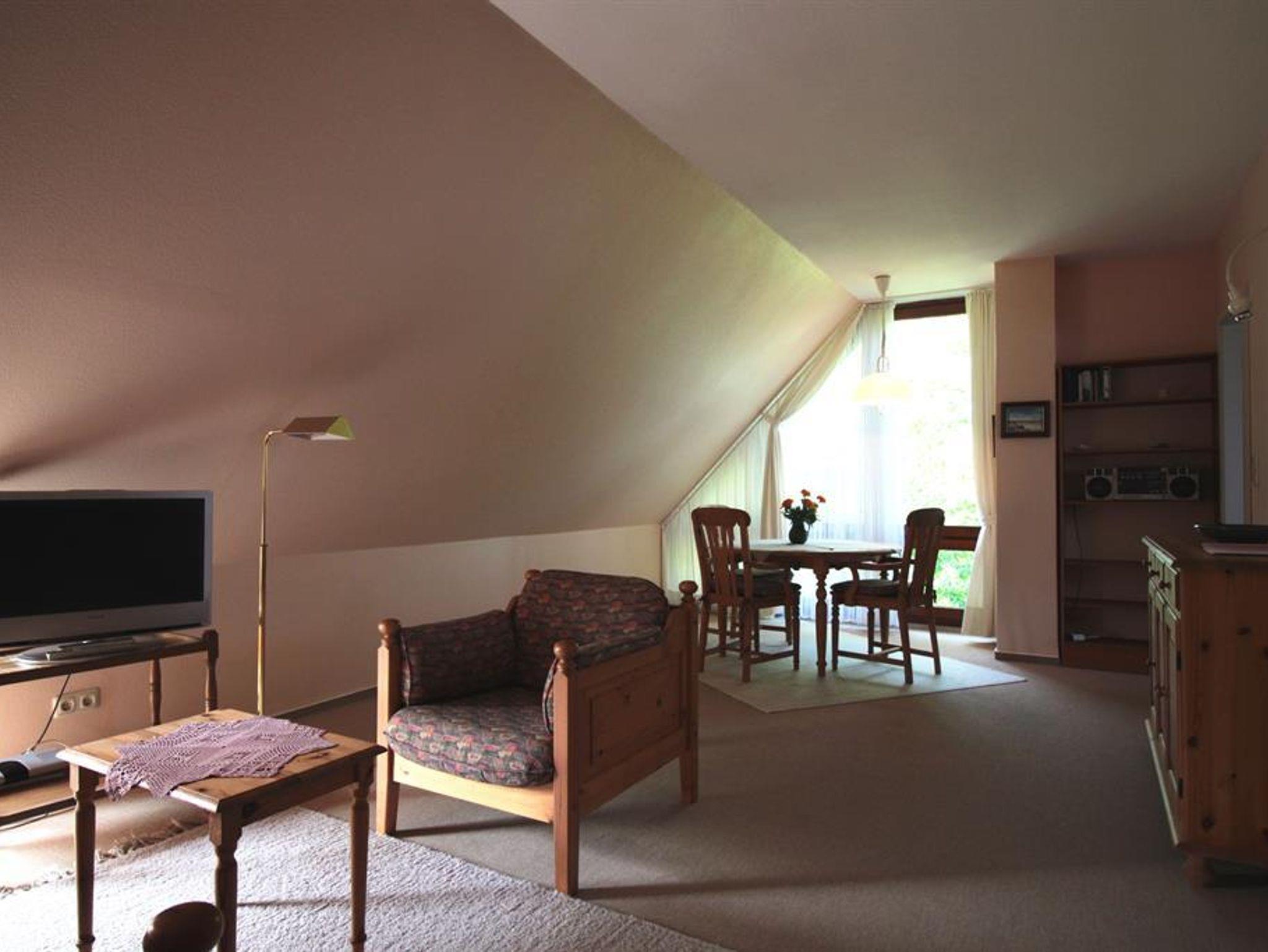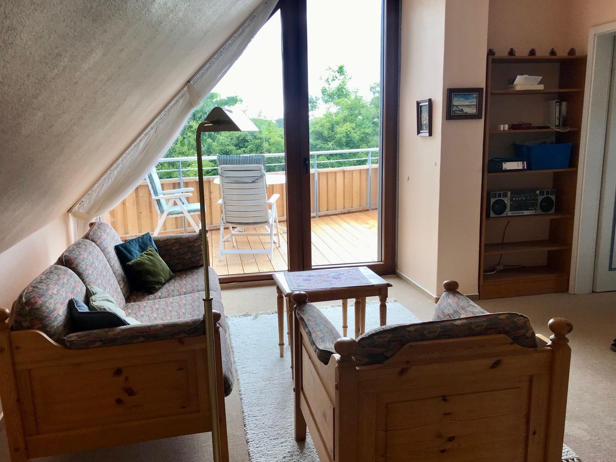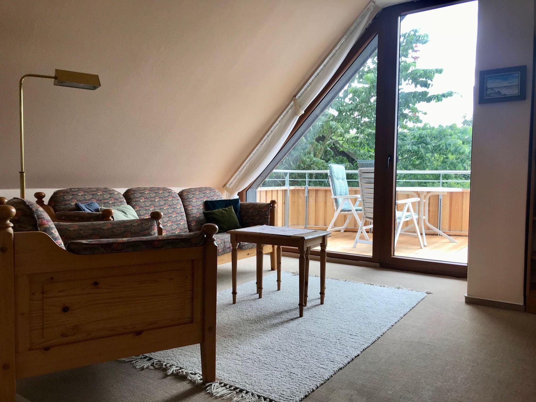 Die Ferienwohnung (45 qm) Leuchtturm liegt im Dachgeschoss und hat einen 10 qm großen Balkon.